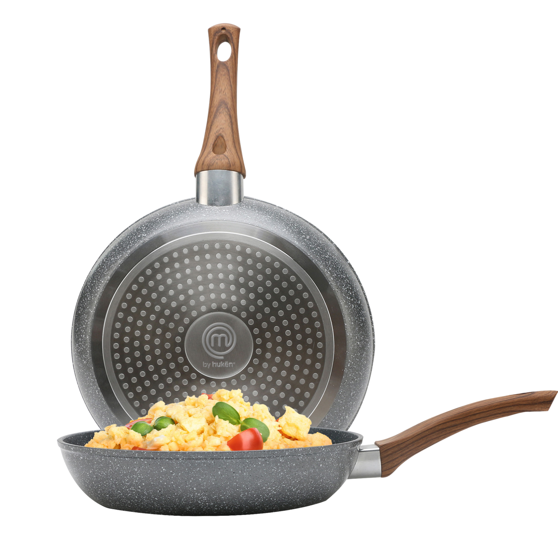 Descubre la perfección en cada cocción con el Sartén Premium Granite+ 20cm de Hukën x MasterChef. Ideal para todo tipo de preparaciones, su antiadherente superior facilita la cocción y limpieza, mientras que el mango ergonómico y aislado con efecto de madera proporciona una manipulación segura y cómoda. Su elegante acabado de mármol granito añade sofisticación a tu cocina. Compatible con estufas de gas, eléctricas y parrillas de inducción, este sartén es versátil y funcional. Fabricada sin sustancias tóxicas y con aluminio forjado ultra resistente, asegura durabilidad y seguridad. Además, su tecnología avanzada permite un calentamiento rápido y uniforme, garantizando resultados perfectos. ¡Es momento de transformar tu cocina con estilo y eficiencia!