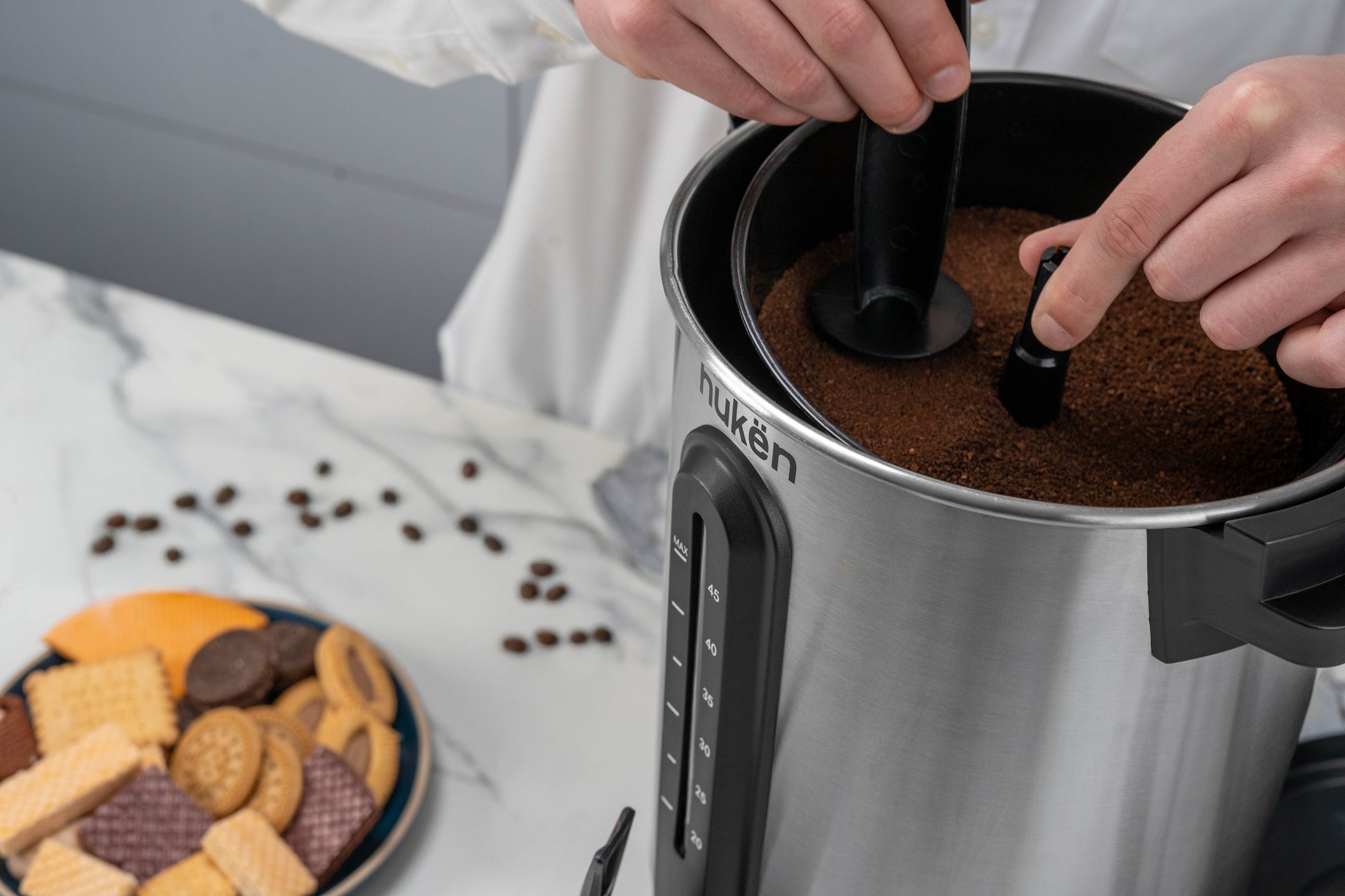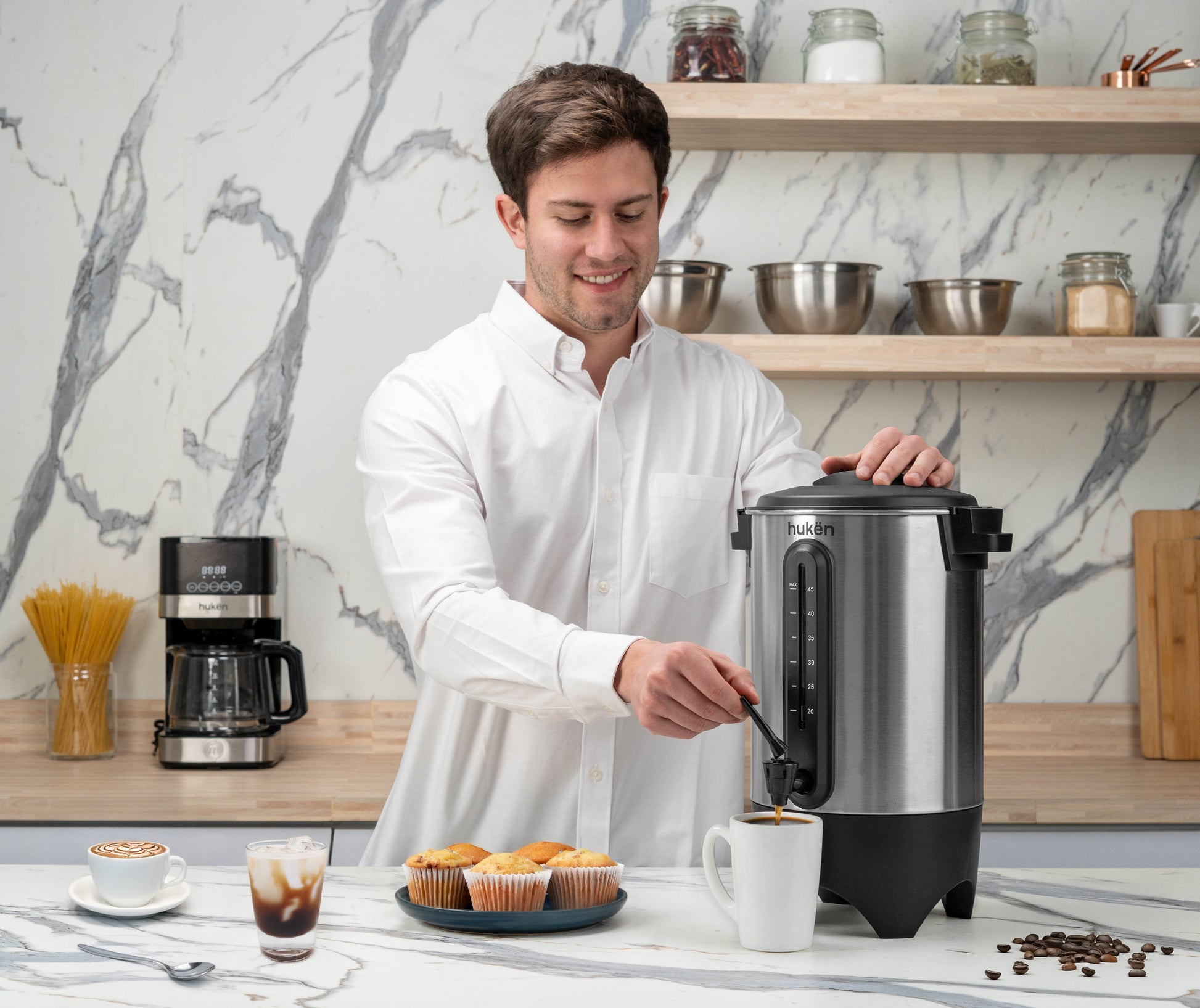 Cafetera de Urna Bold-Brew XL 45 Tazas con Filtro Permanente | Cuerpo Acero Inox | Asas Frías al Tacto | Hukën x MasterChef