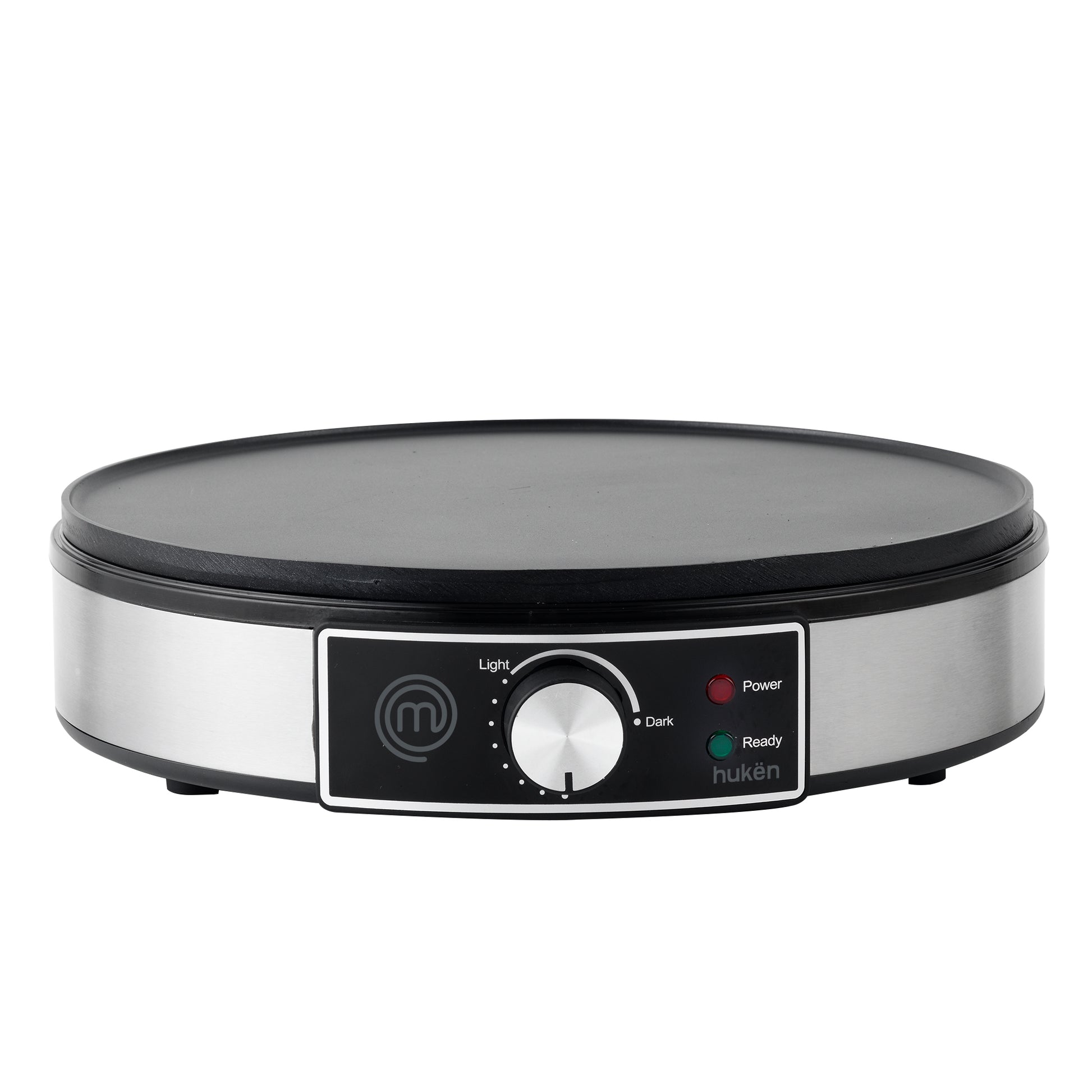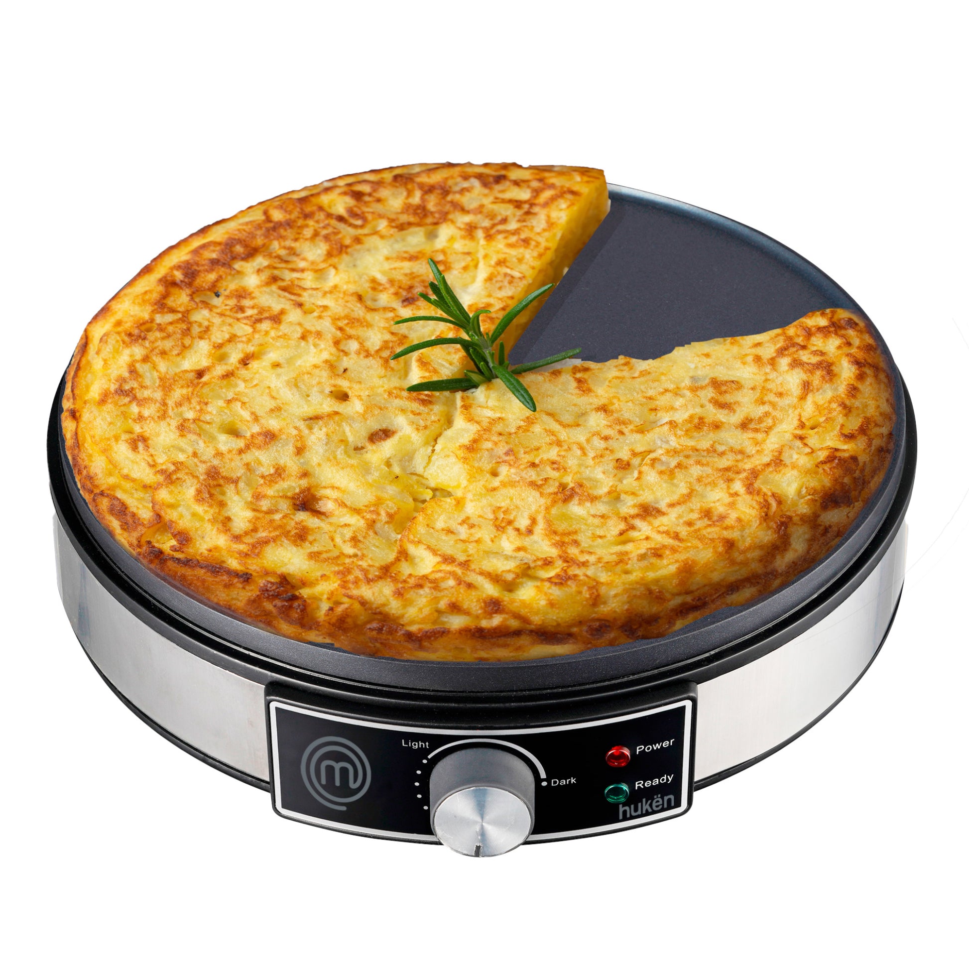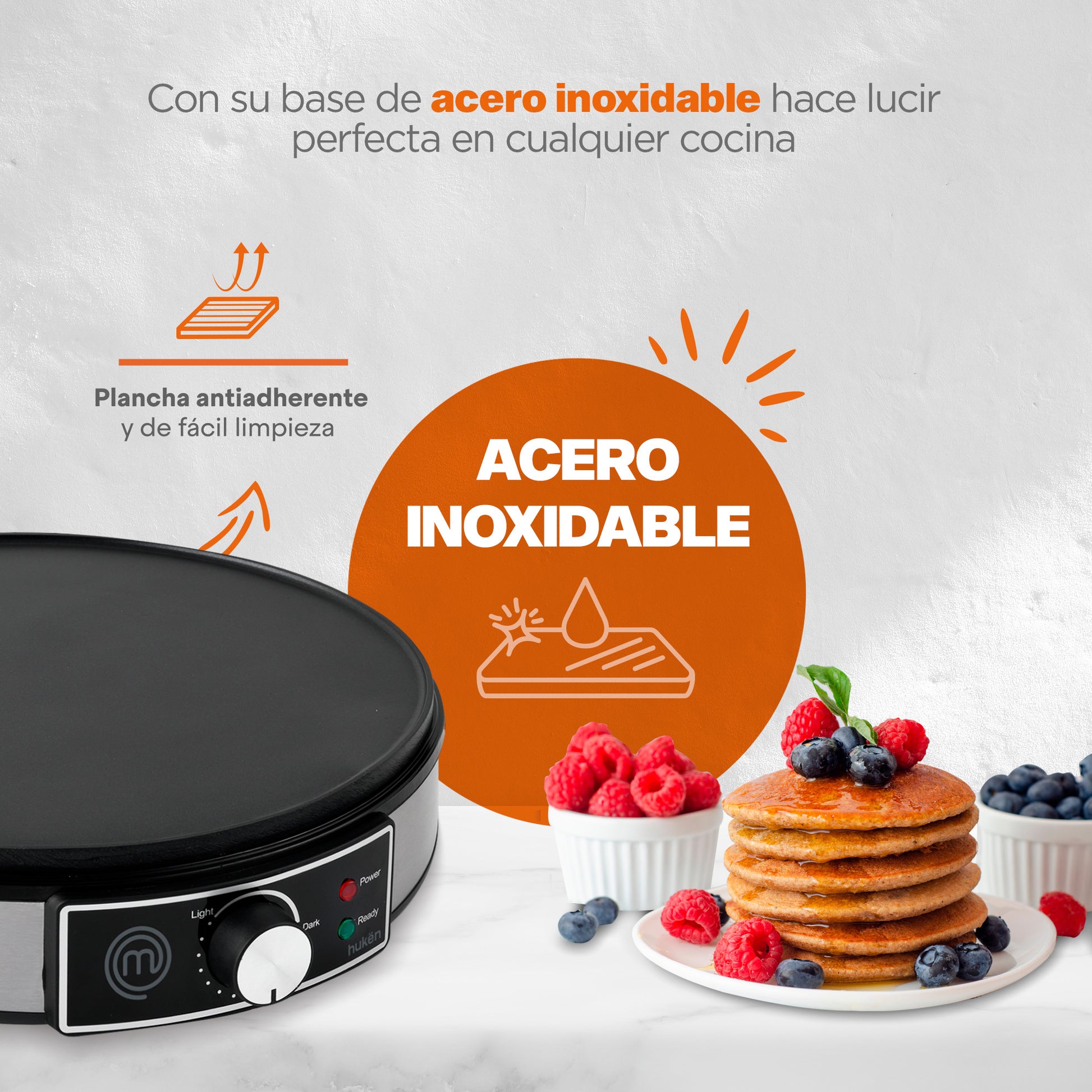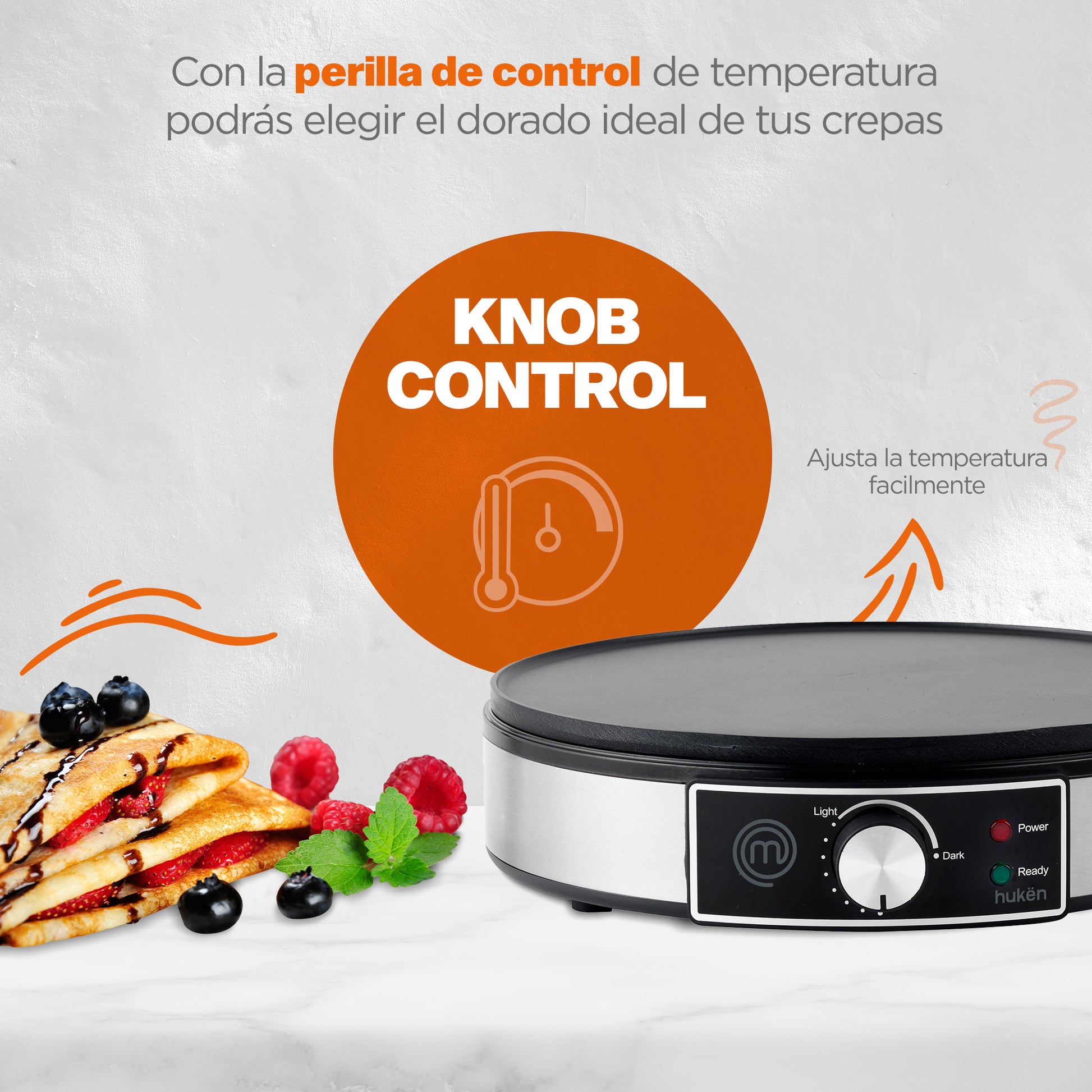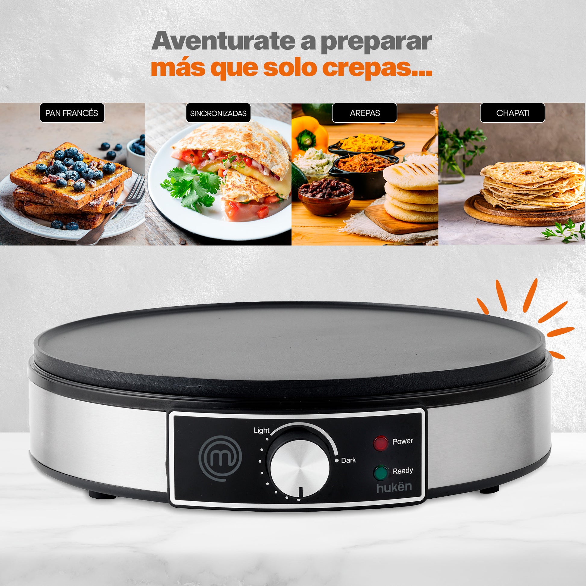 Crepera Eléctrica | Parrilla Multifuncional HEAT+ Premium 30cm con Perilla | Acero Inoxidable | Hukën x MasterChef
