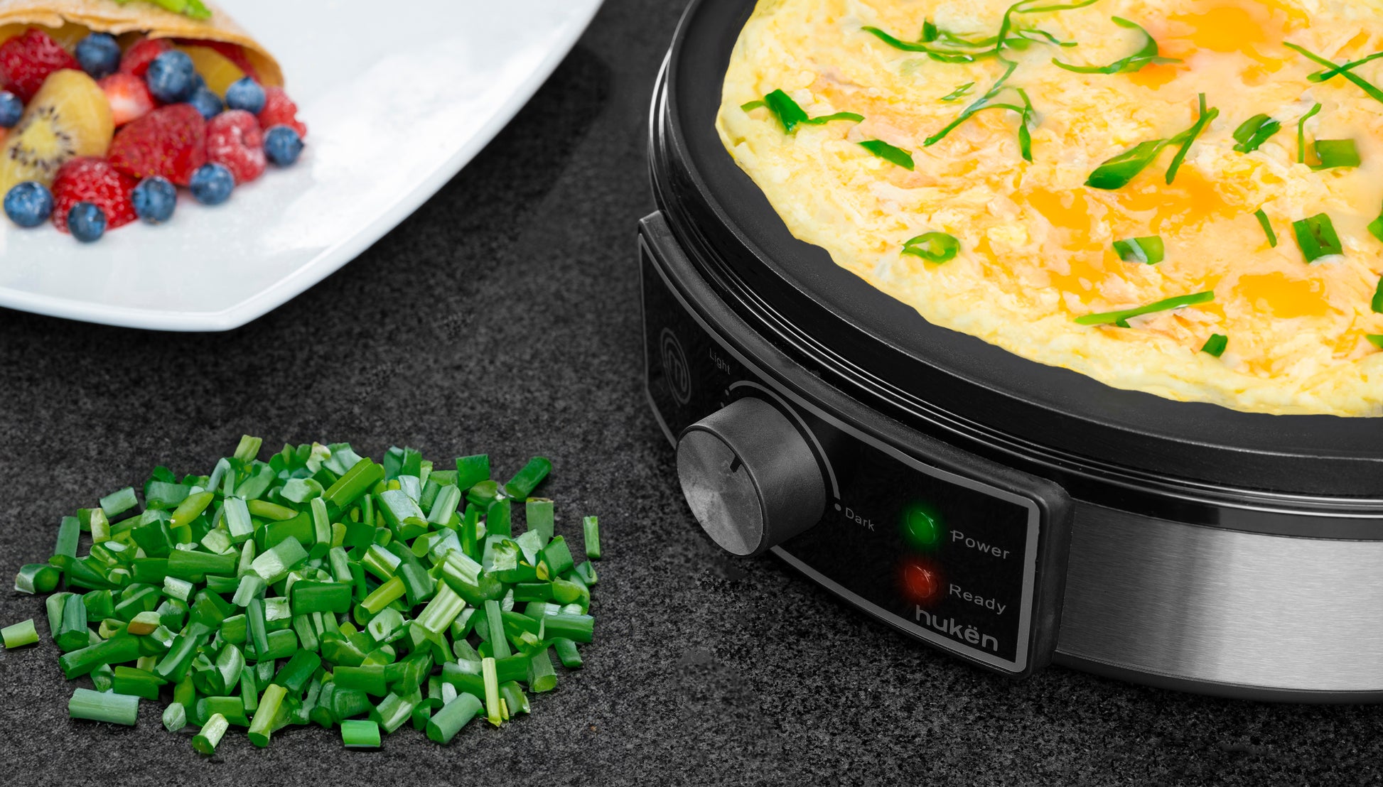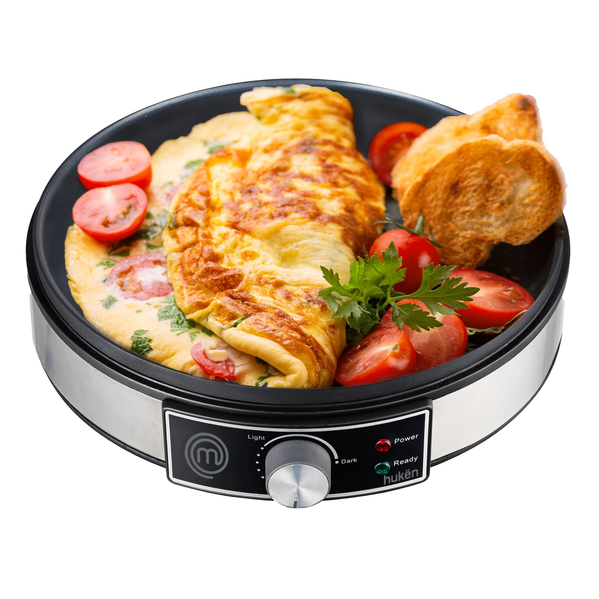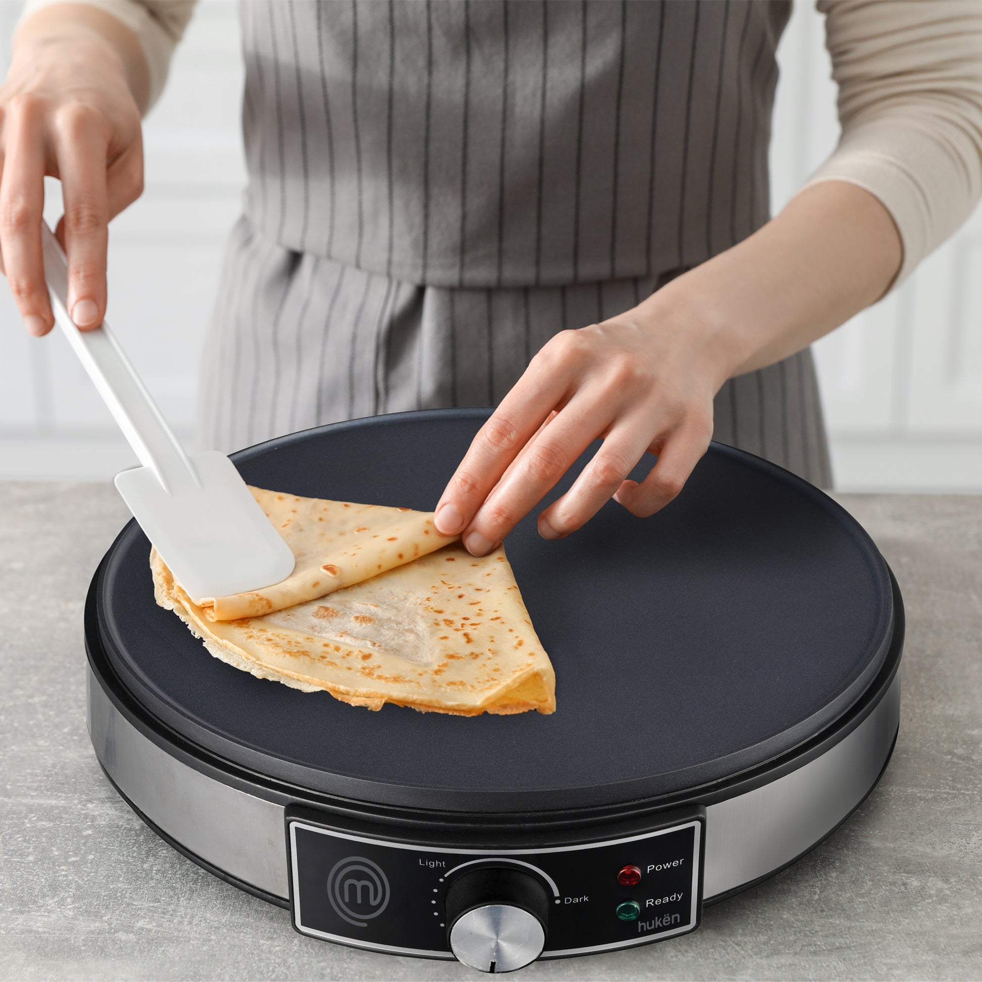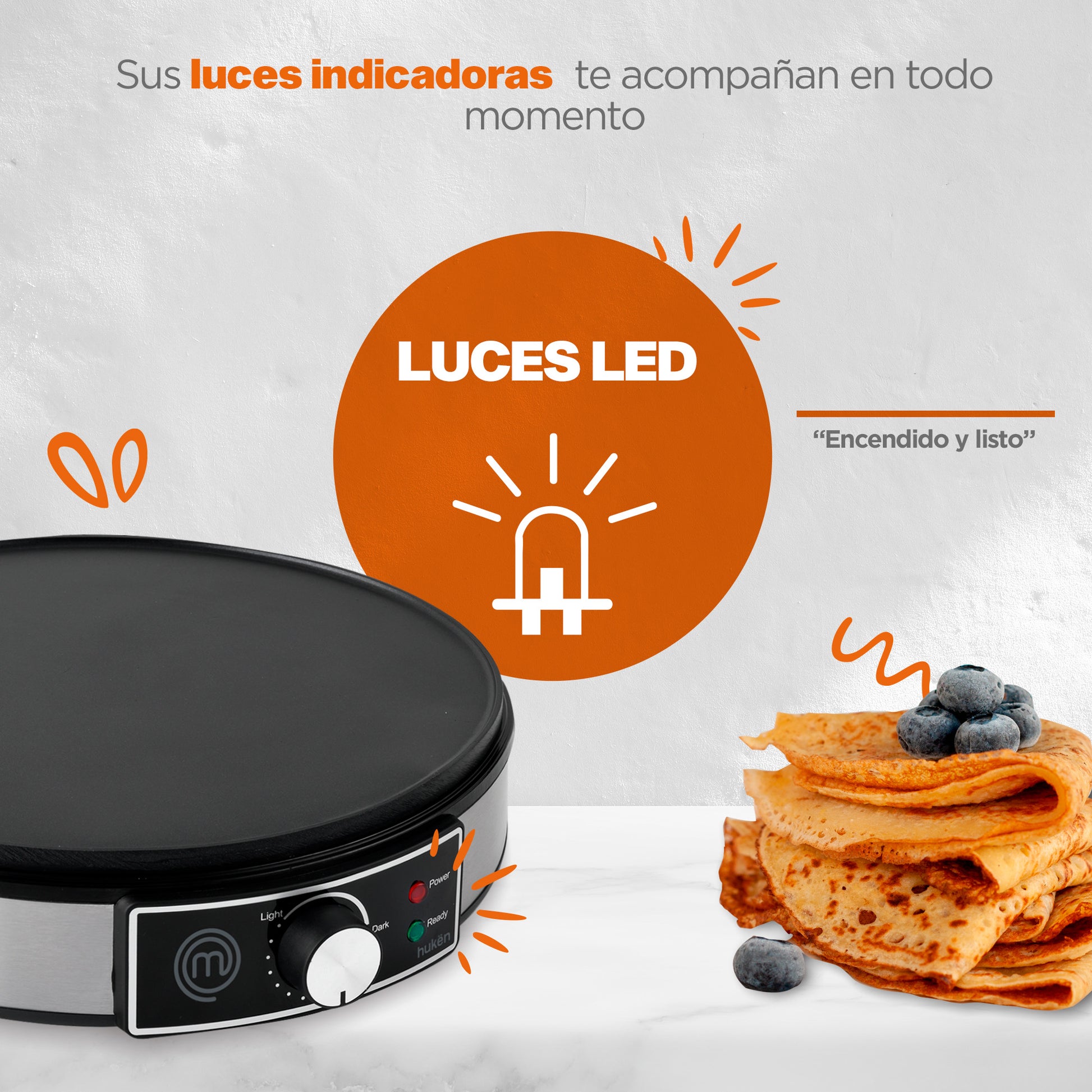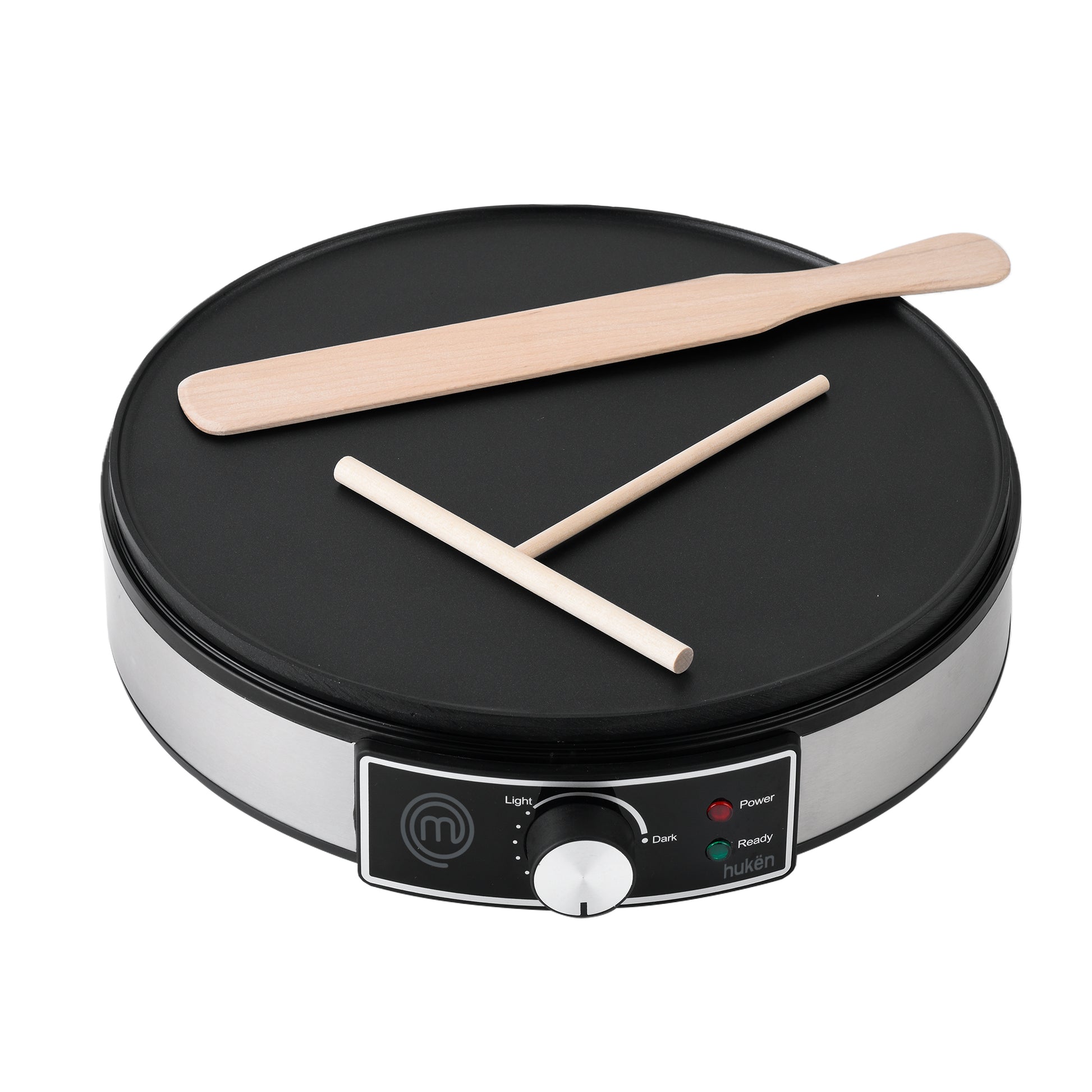 Crepera Eléctrica | Parrilla Multifuncional HEAT+ Premium 30cm con Perilla | Acero Inoxidable | Hukën x MasterChef