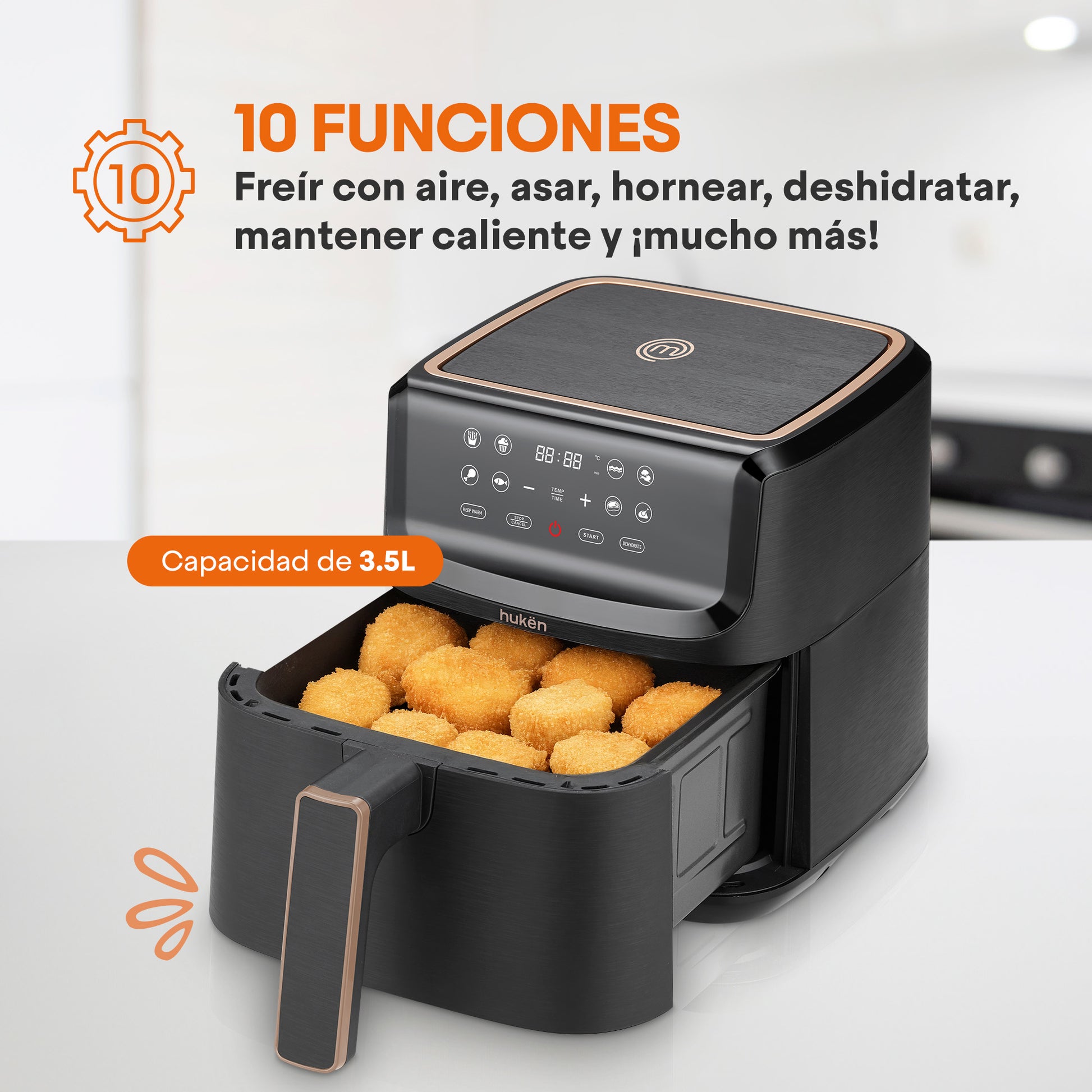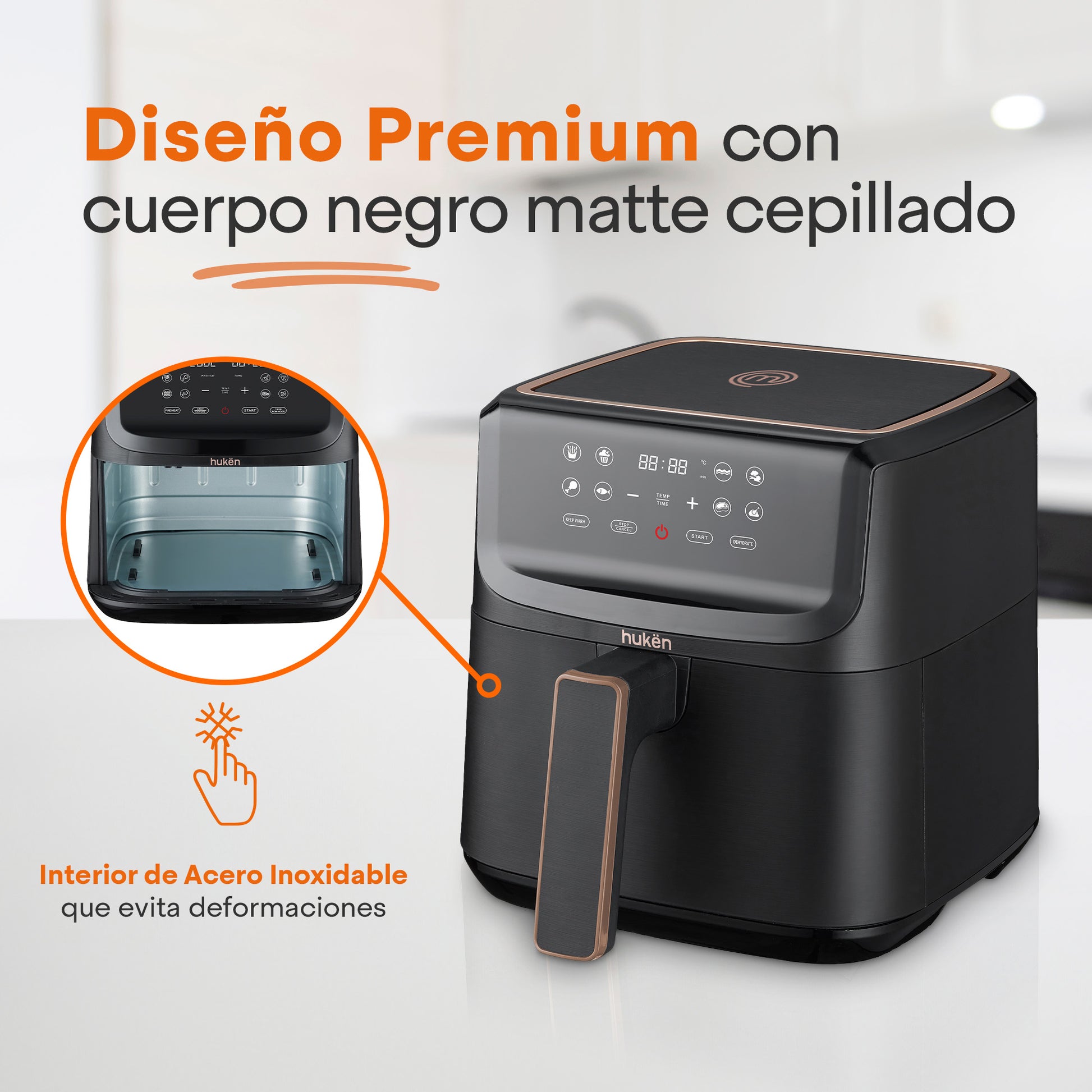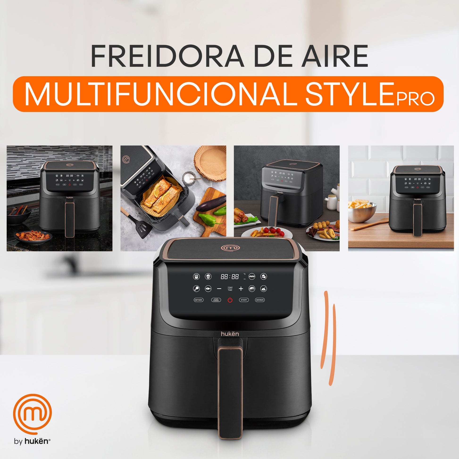 Freidora de Aire StylePro 3.5L | Panel Touch Digital con Pantalla LED | 10 Funciones | Precalienta y Gira Automático | Interior Acero Inoxidable | Control 35°C a 200°C | Hukën x MasterChef