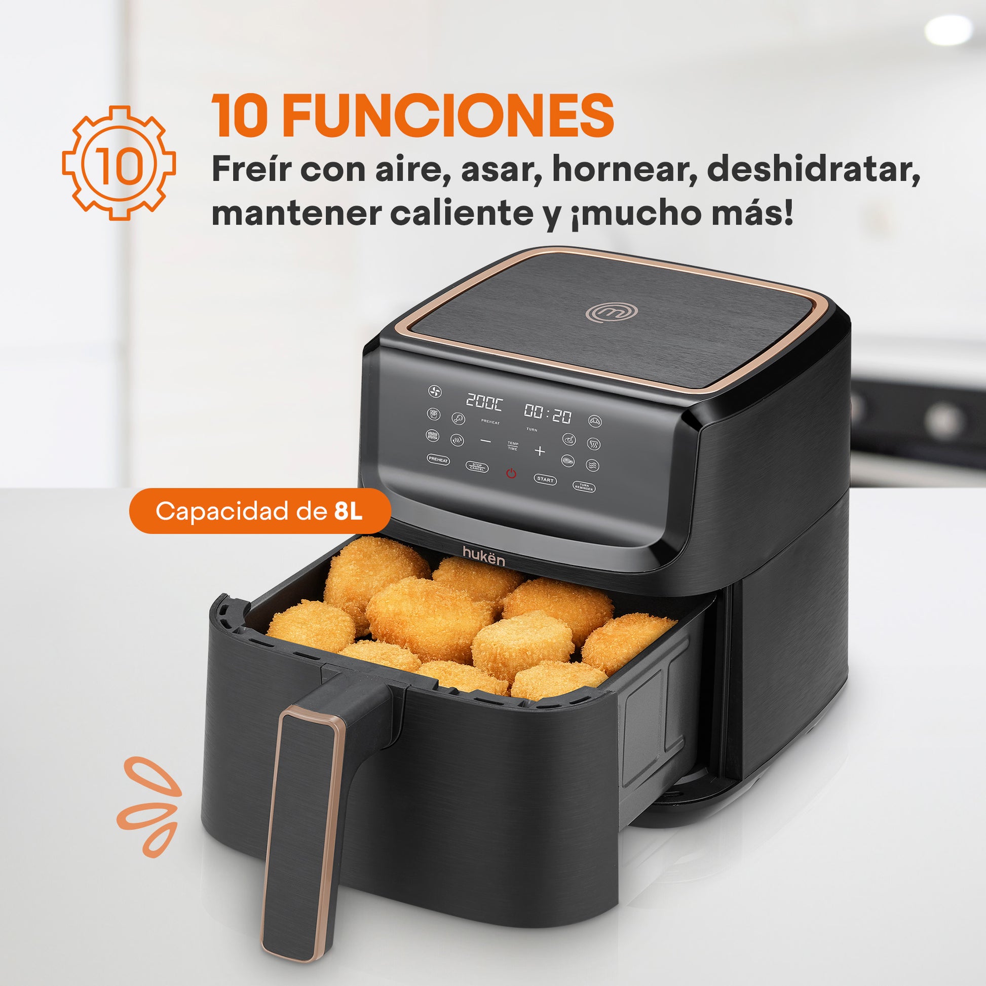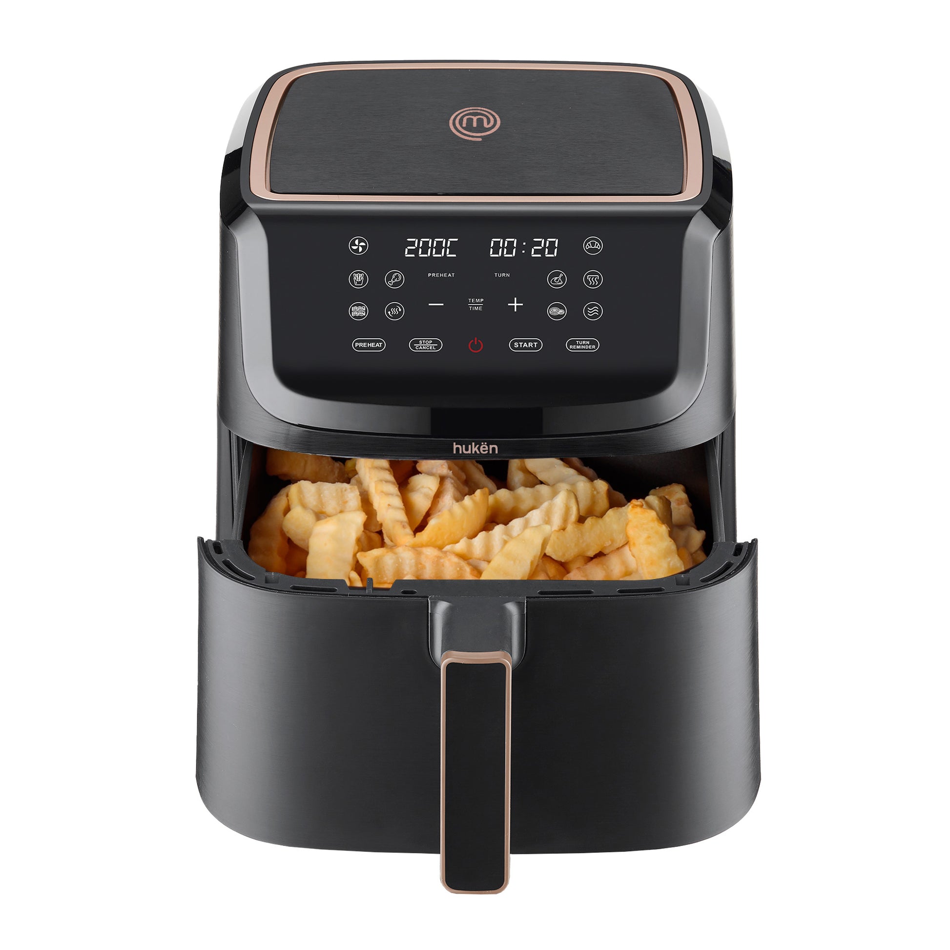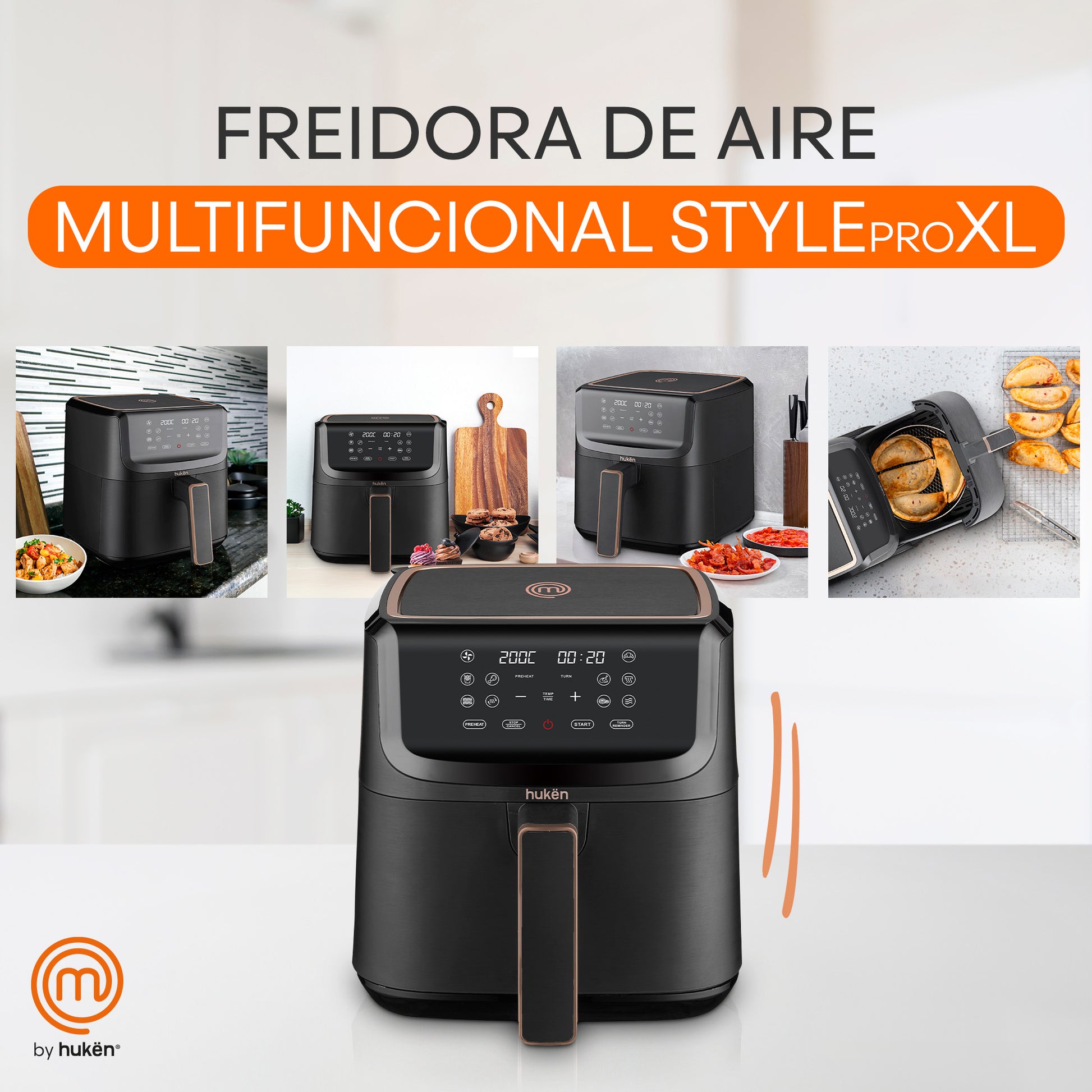 Freidora de Aire StylePro XL 8L | Panel Touch con Pantallas LED Dual | 10 Funciones Inteligentes | Control Preciso 30°C–200°C | Interior Inoxidable – Hukën x MasterChef