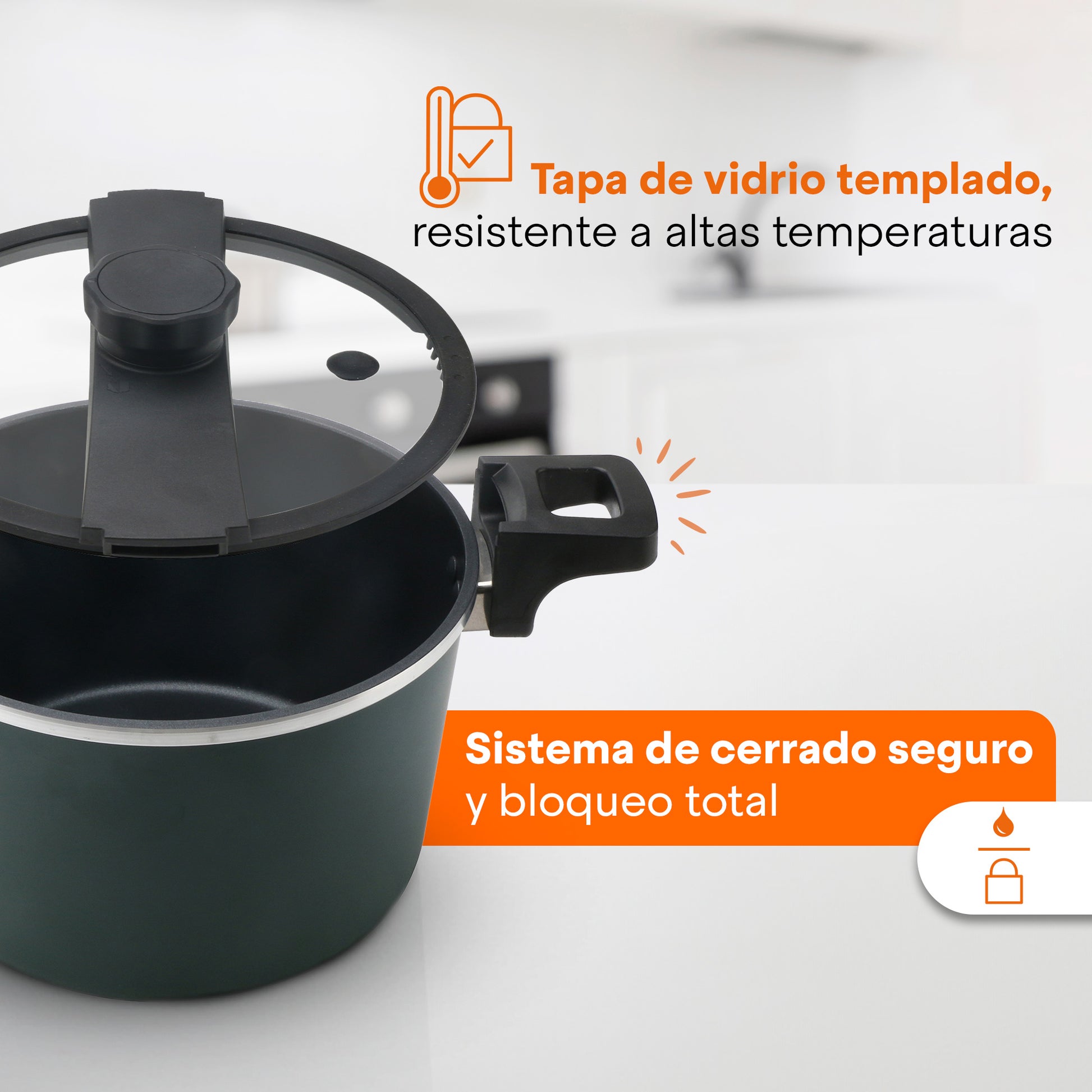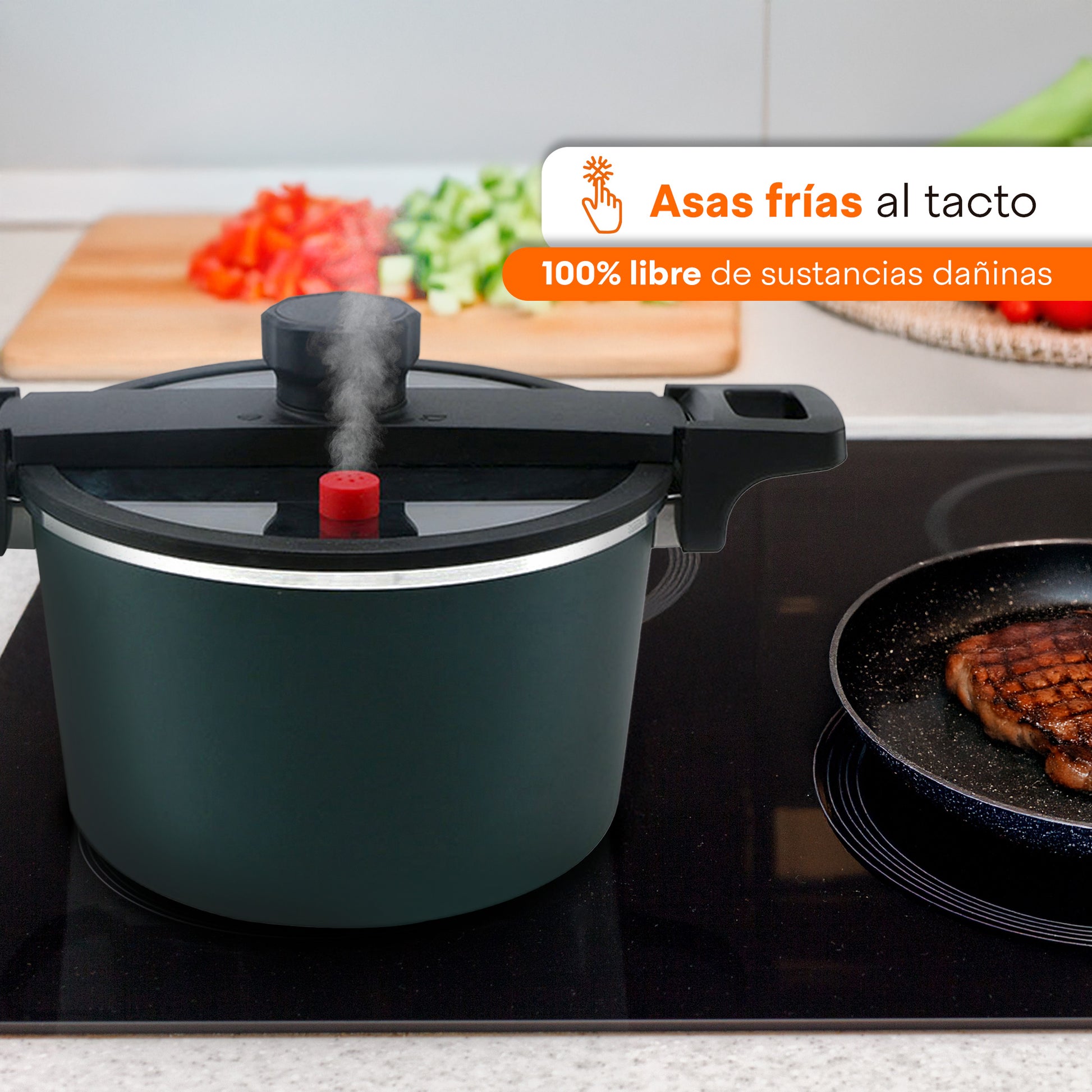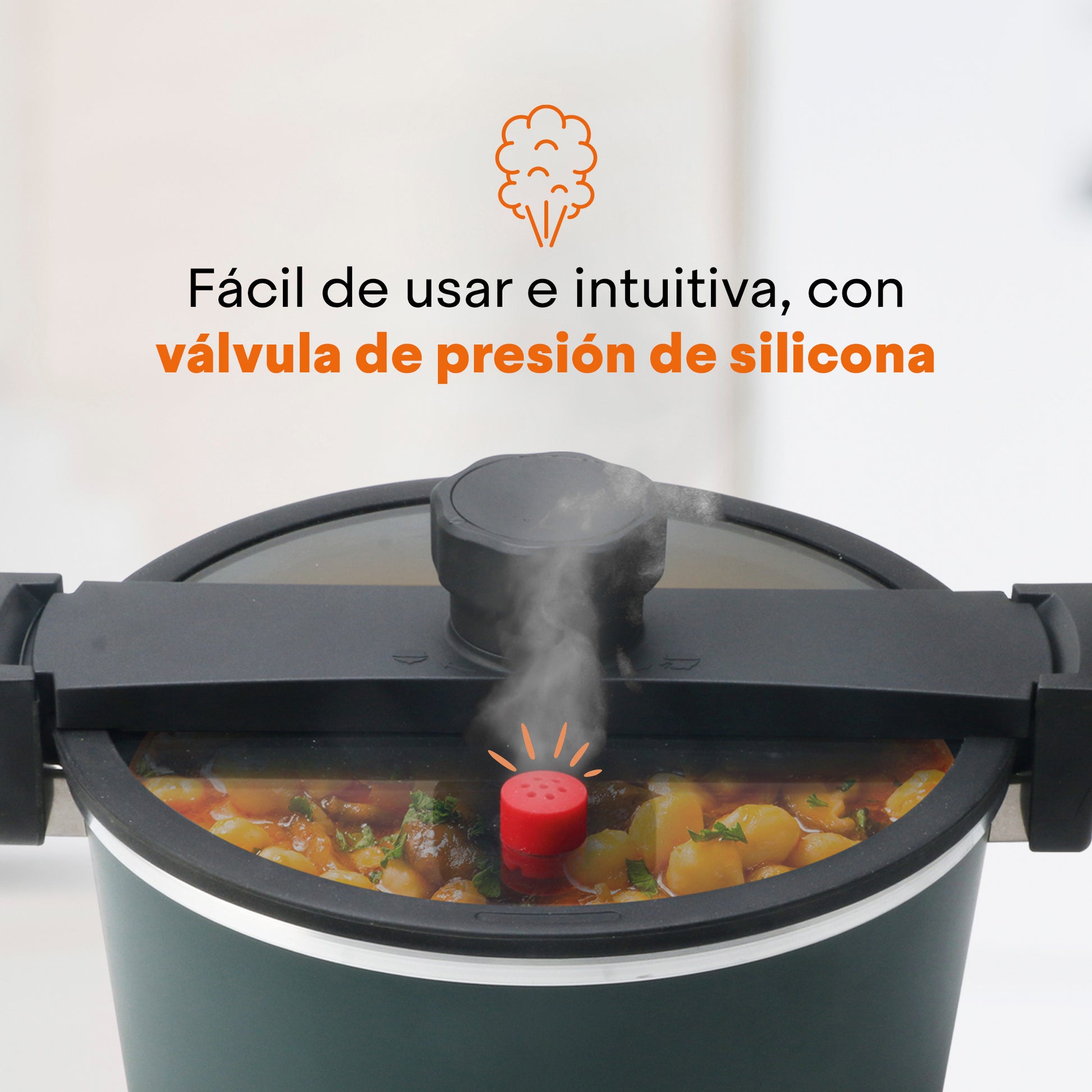 Olla de Presión Plus 5L | Antiadherente | Válvula Automática de Silicona | Asas Frías al Tacto | Tapa de Vidrio | Compatible con Inducción | Sistema de Seguridad | Libre de PFOA | Hukën x MasterChef