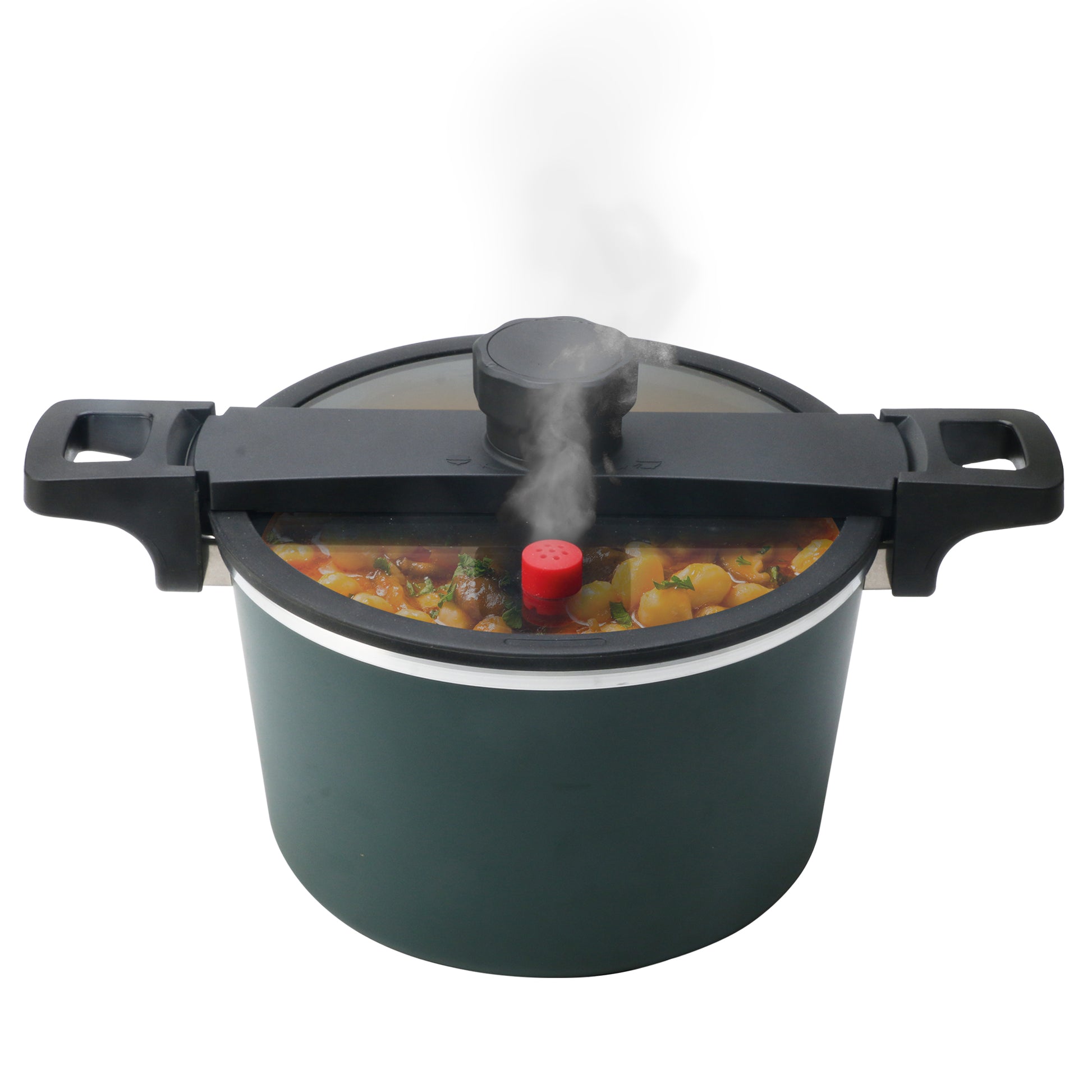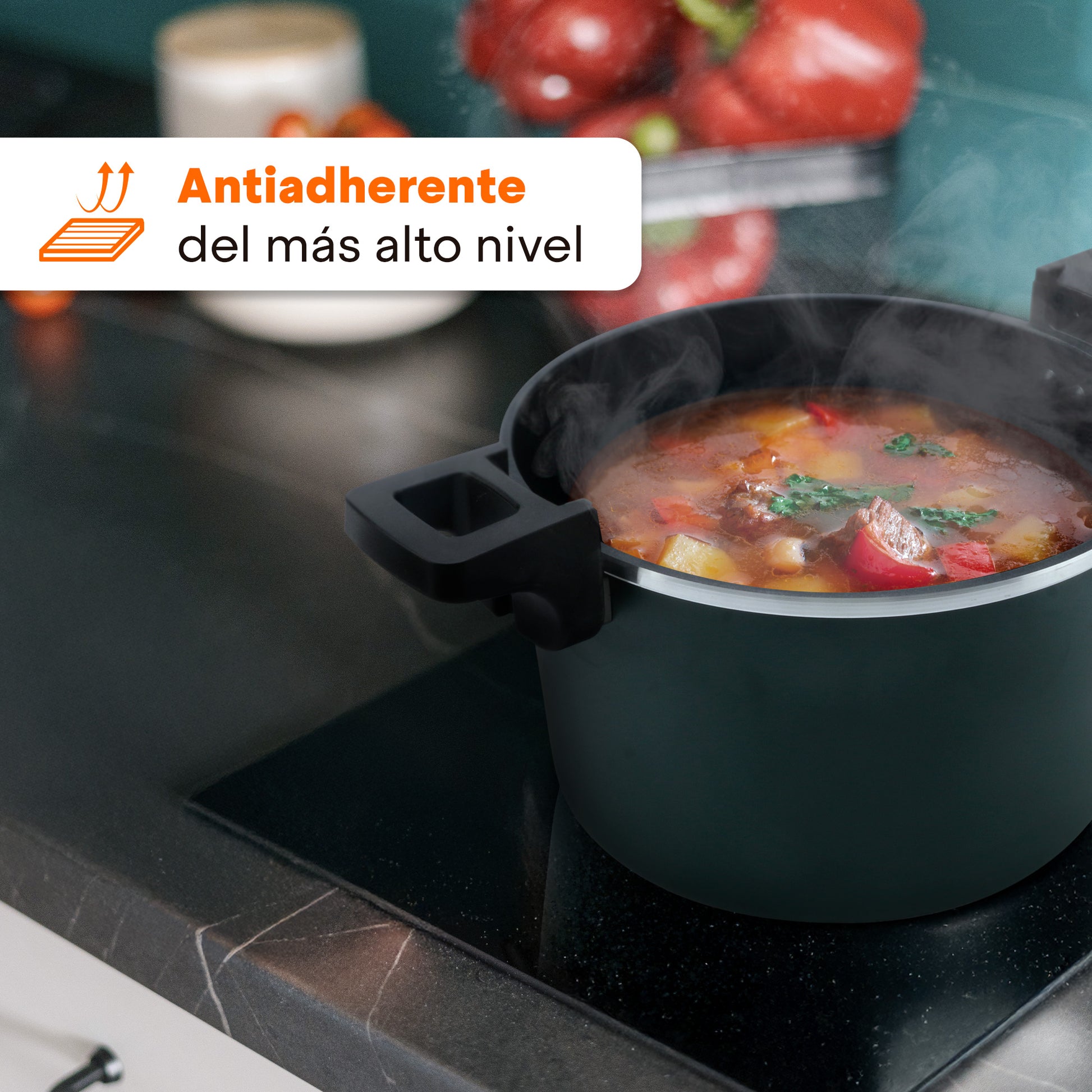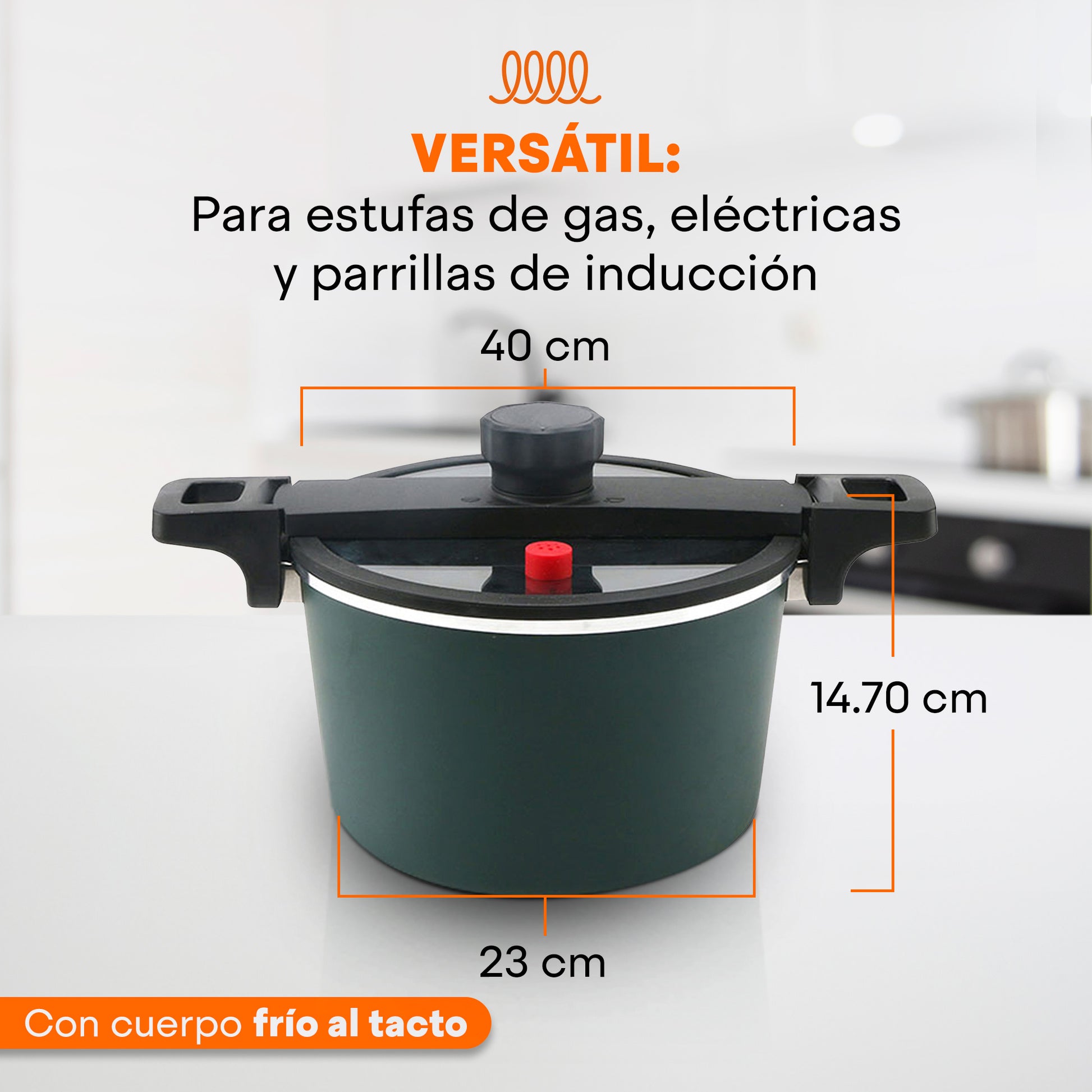 Olla de Presión Plus 5L | Antiadherente | Válvula Automática de Silicona | Asas Frías al Tacto | Tapa de Vidrio | Compatible con Inducción | Sistema de Seguridad | Libre de PFOA | Hukën x MasterChef