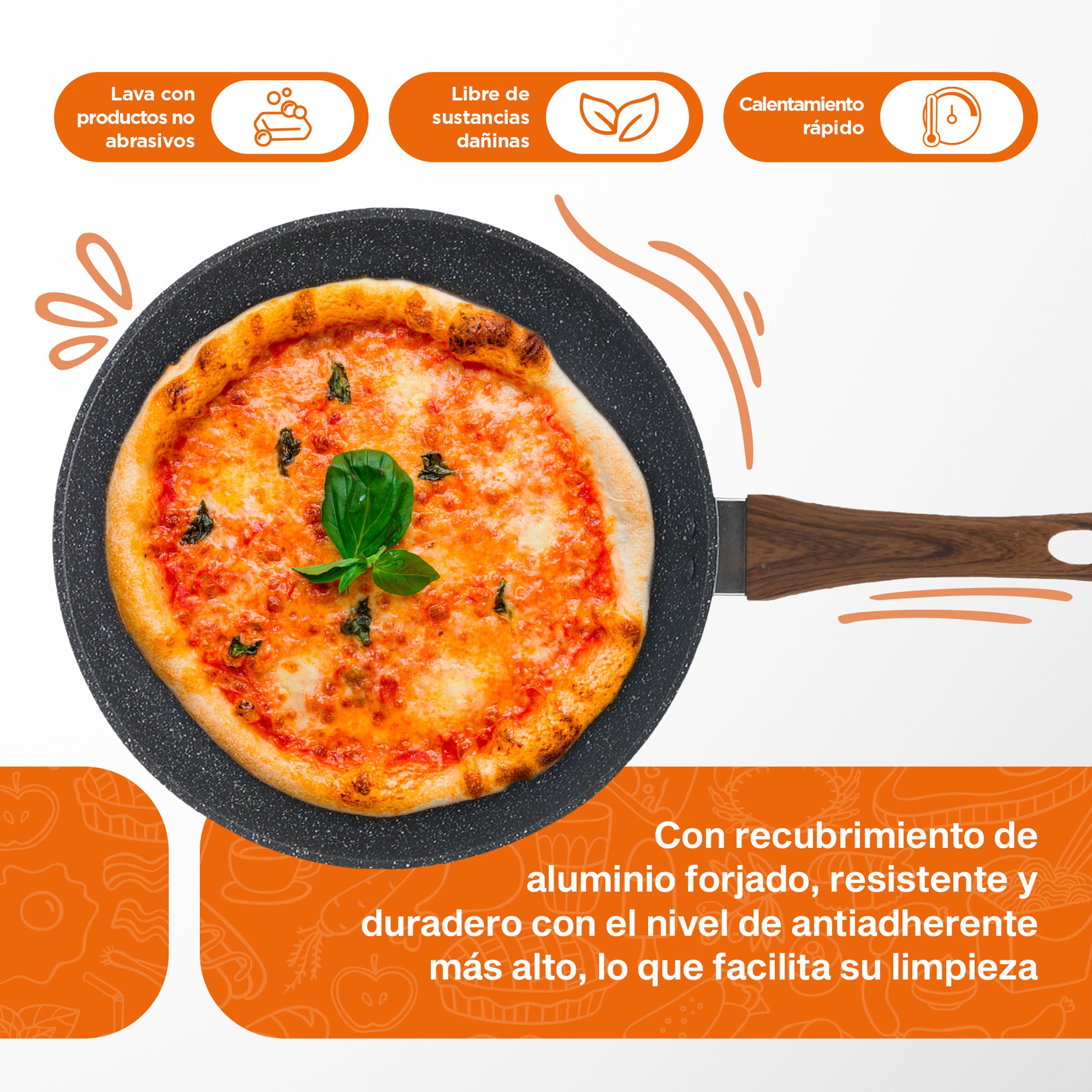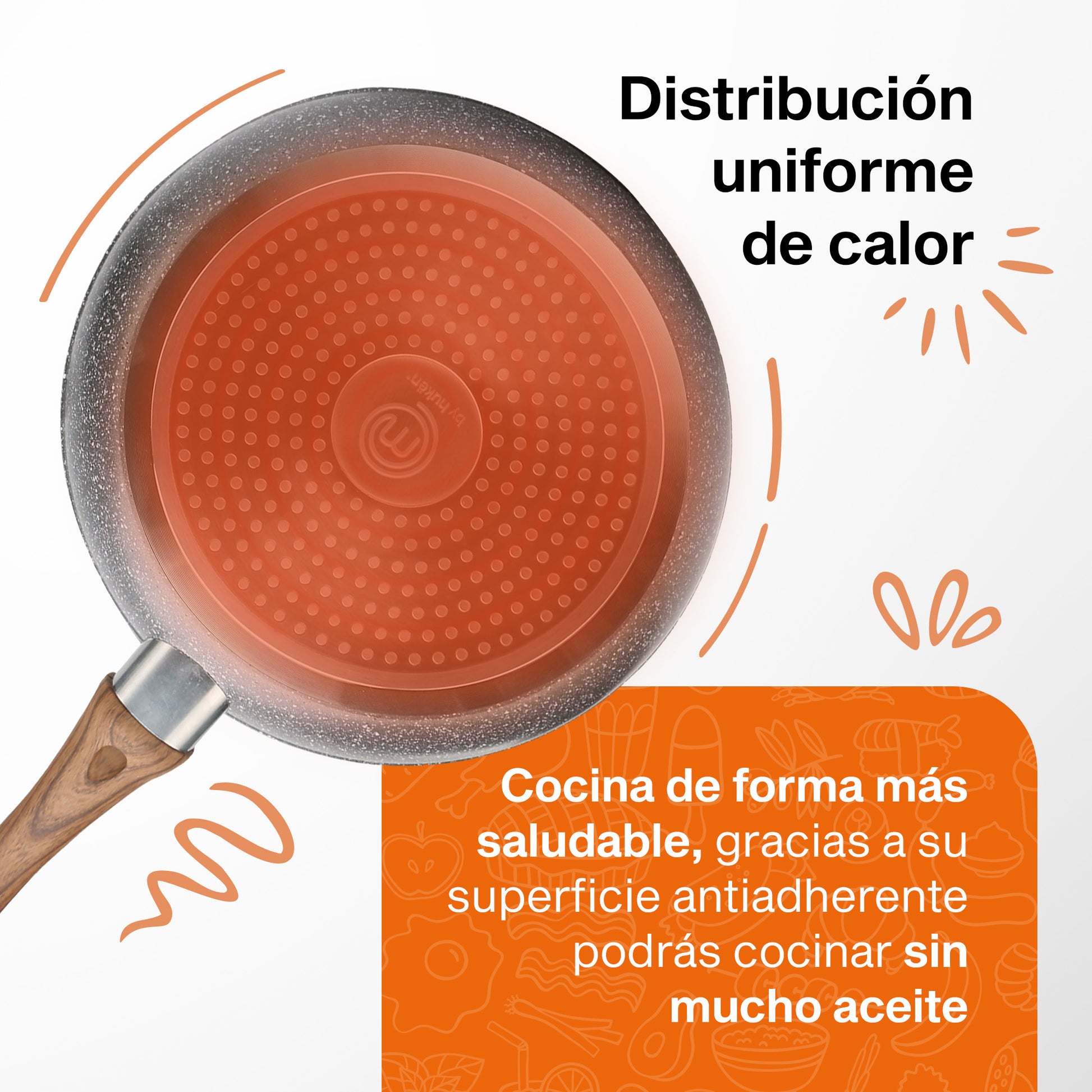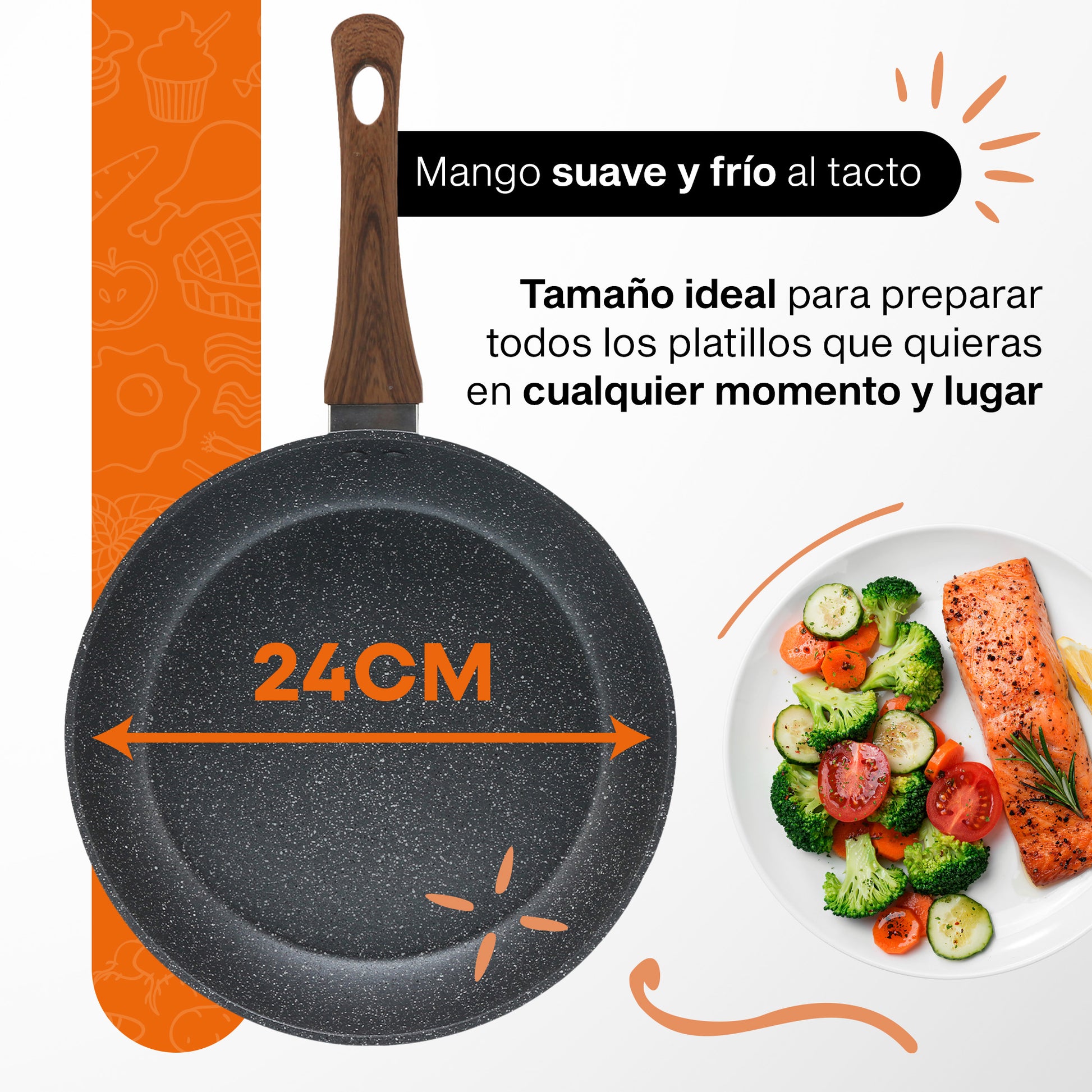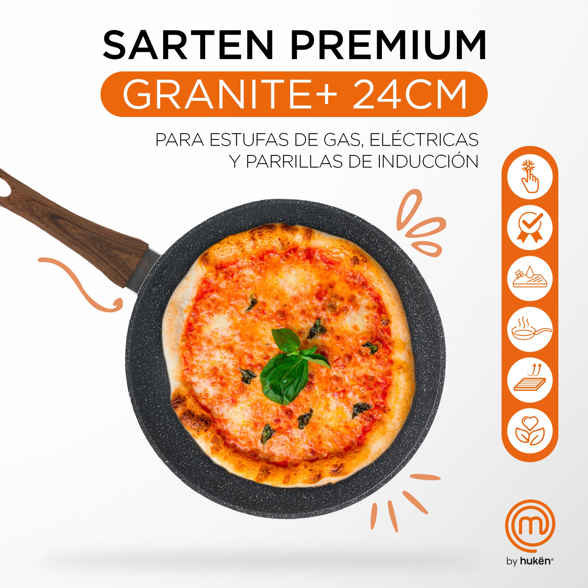 Sartén Granite+ Antiadherente 24cm | Mango Efecto Madera | Compatible con Inducción | Aluminio Forjado | 100% Libre de PFOA | Hukën x MasterChef