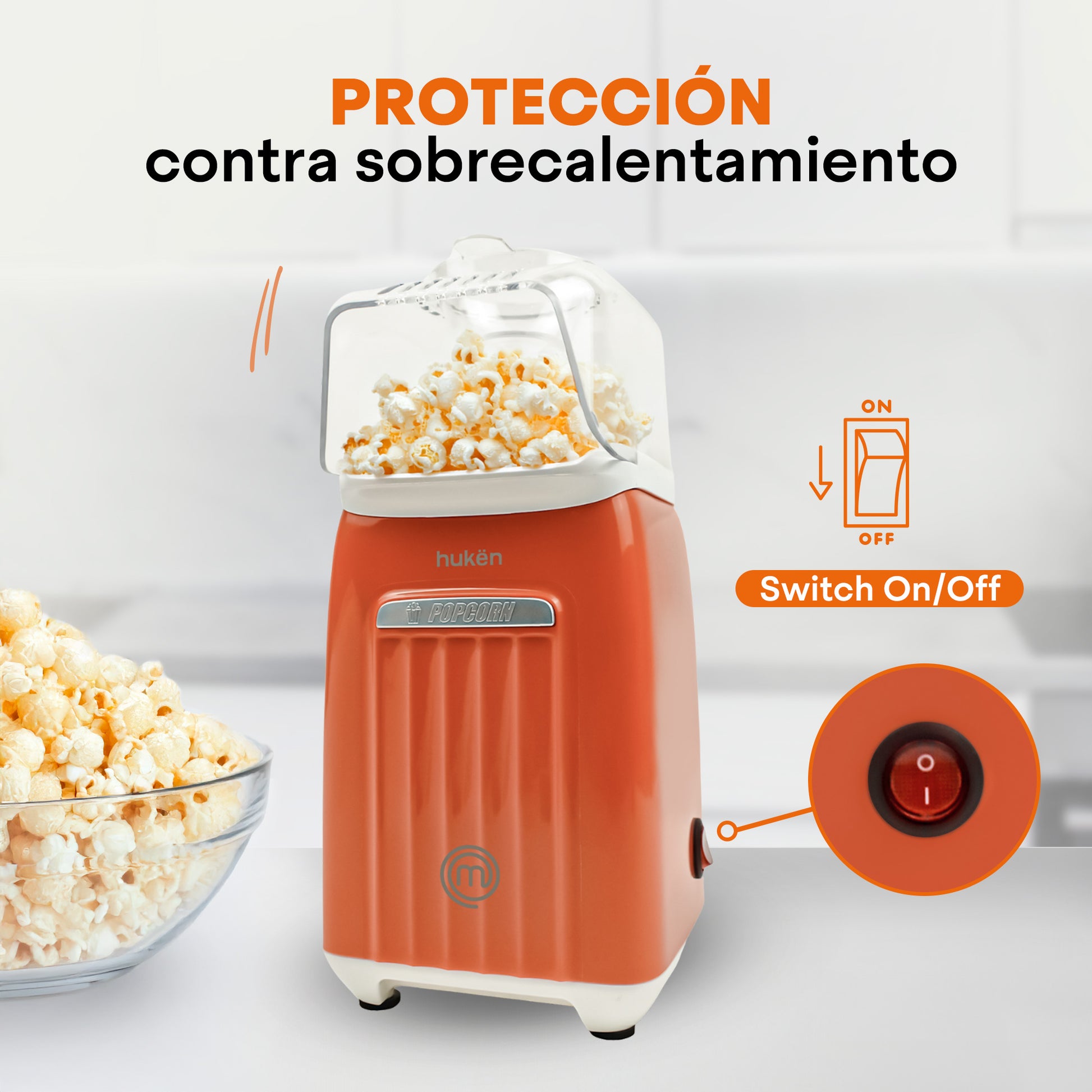 Máquina de Palomitas AirPop Retro 80g | Edición Especial Naranja | Tecnología de Aire Caliente | Calentamiento FLASH | Switch de Encendido | Protección Contra Sobrecalentamiento | Hukën x MasterChef