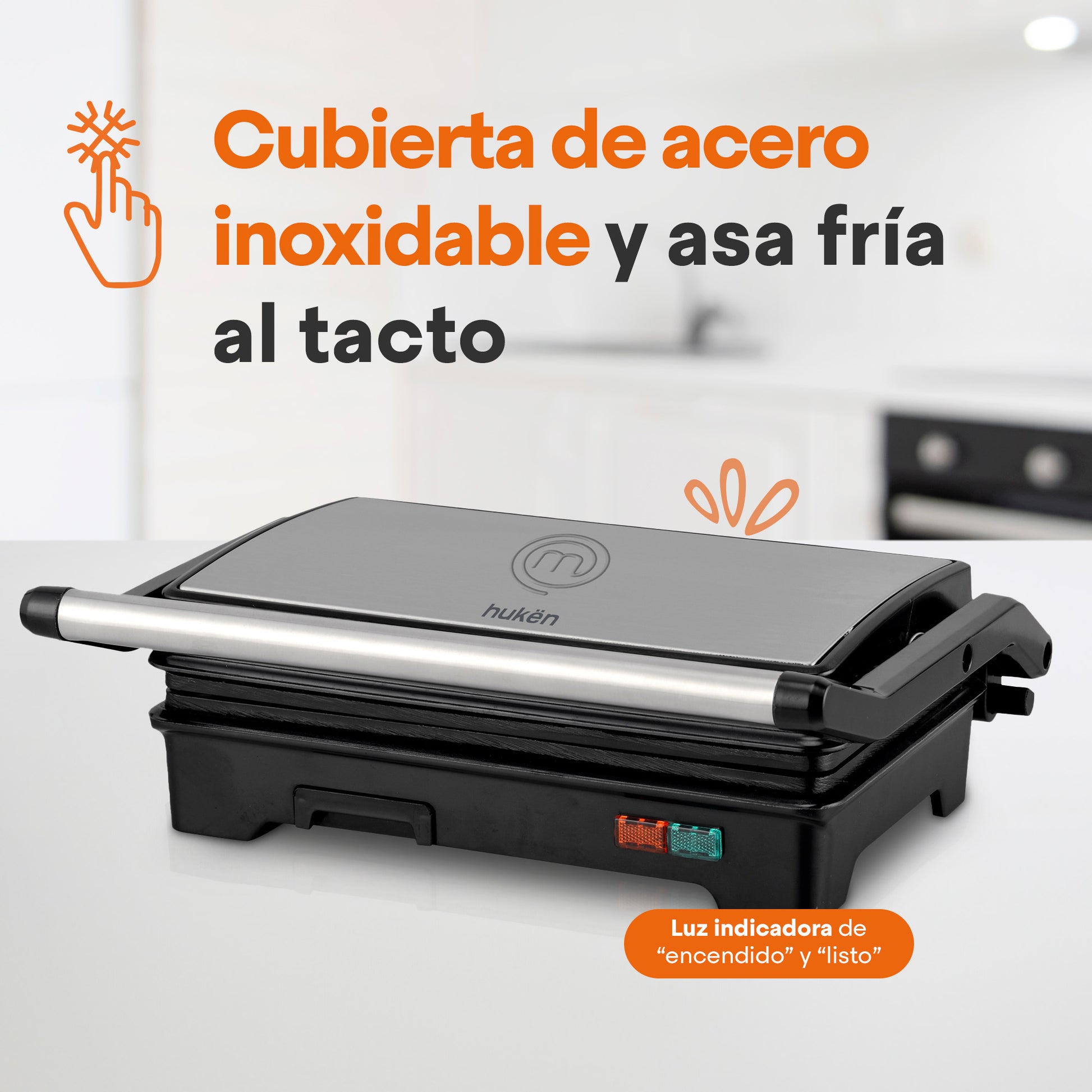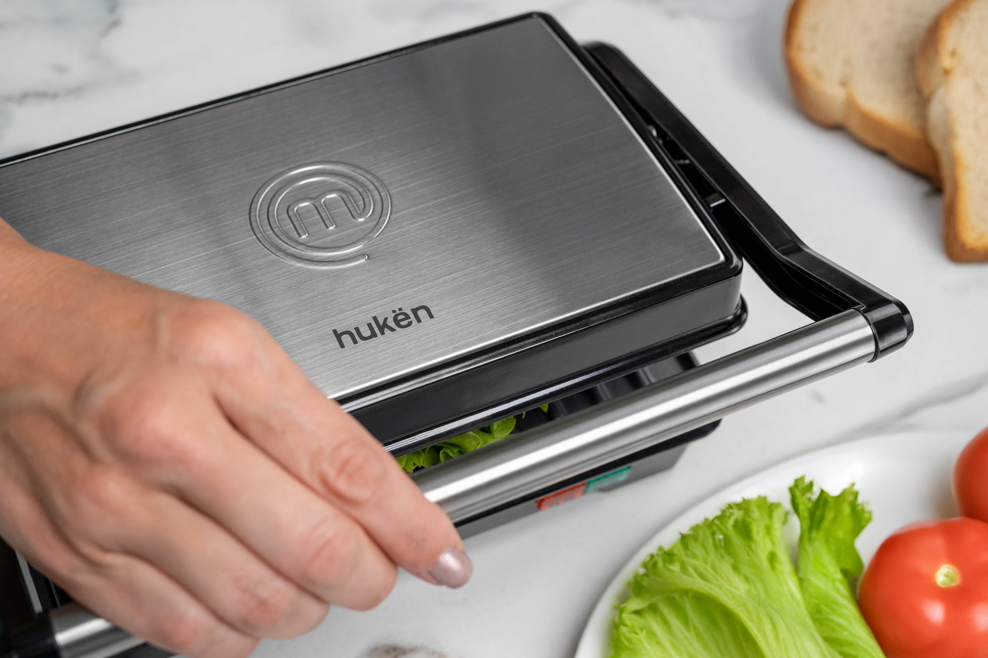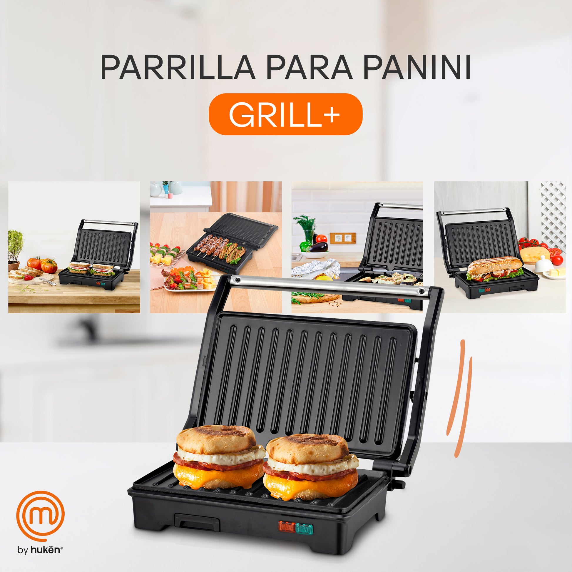 Parrilla para Panini GRILL+ de Acero 2 Rebanadas | Antiadherente y Rápido | Apertura 180° | Hukën x MasterChef