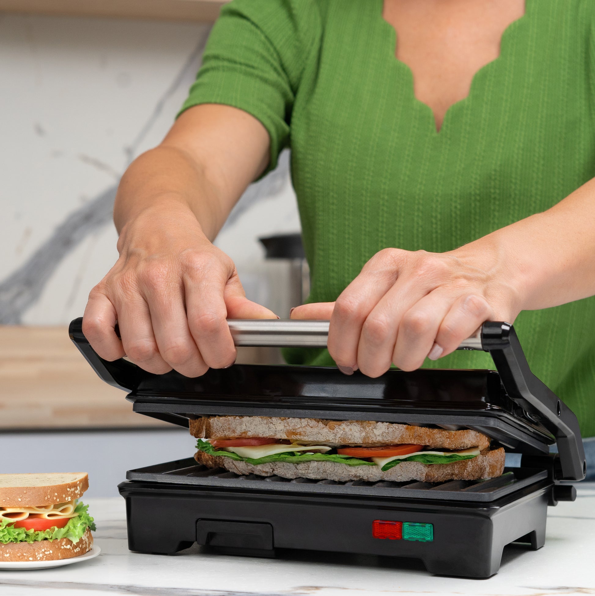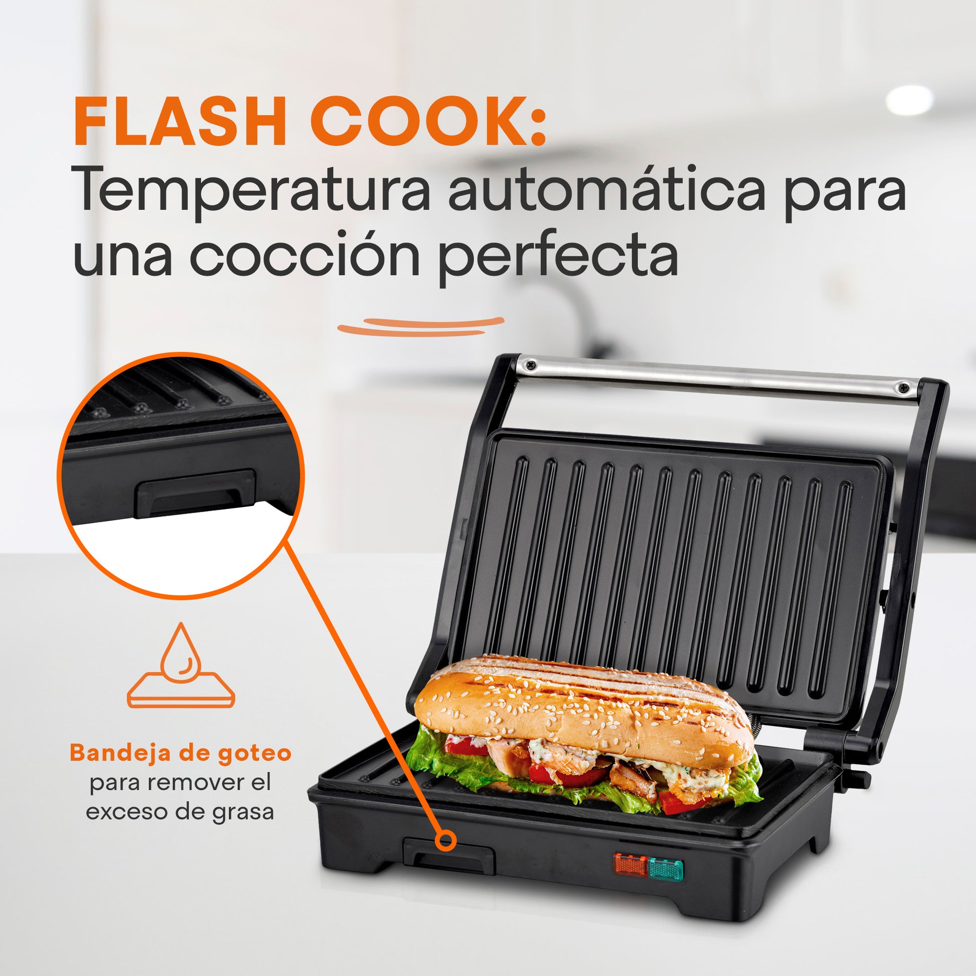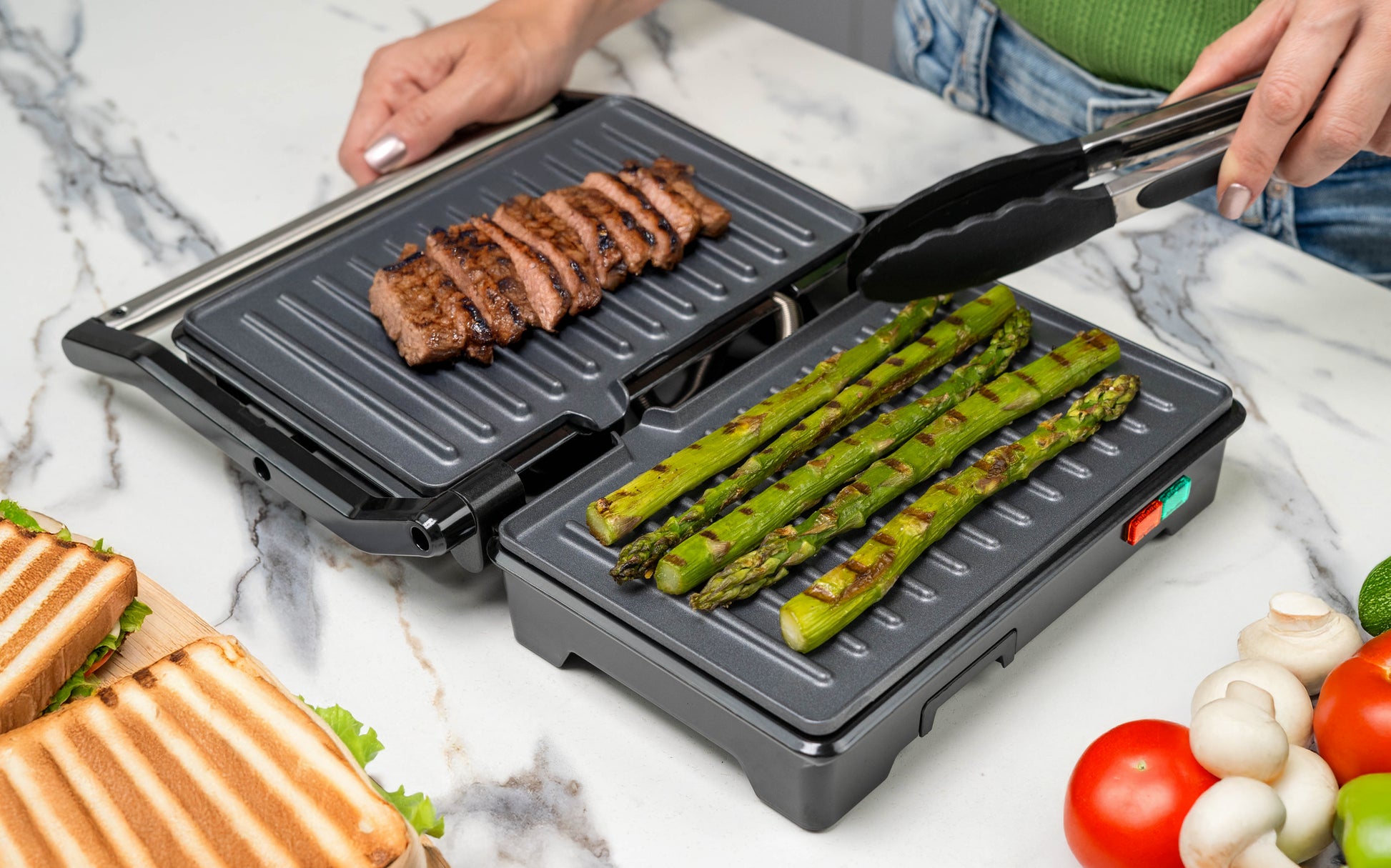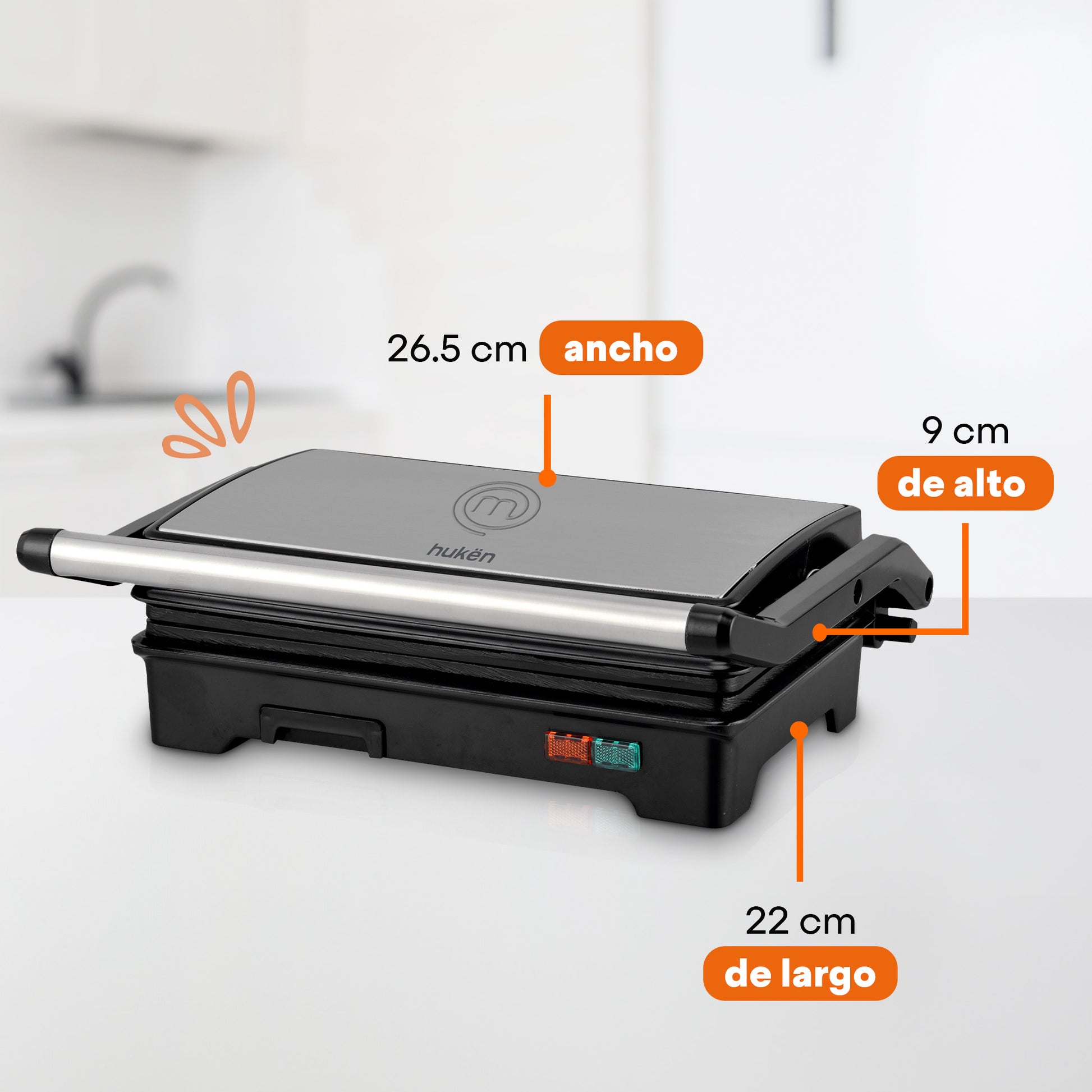 Parrilla para Panini GRILL+ de Acero 2 Rebanadas | Antiadherente y Rápido | Apertura 180° | Hukën x MasterChef