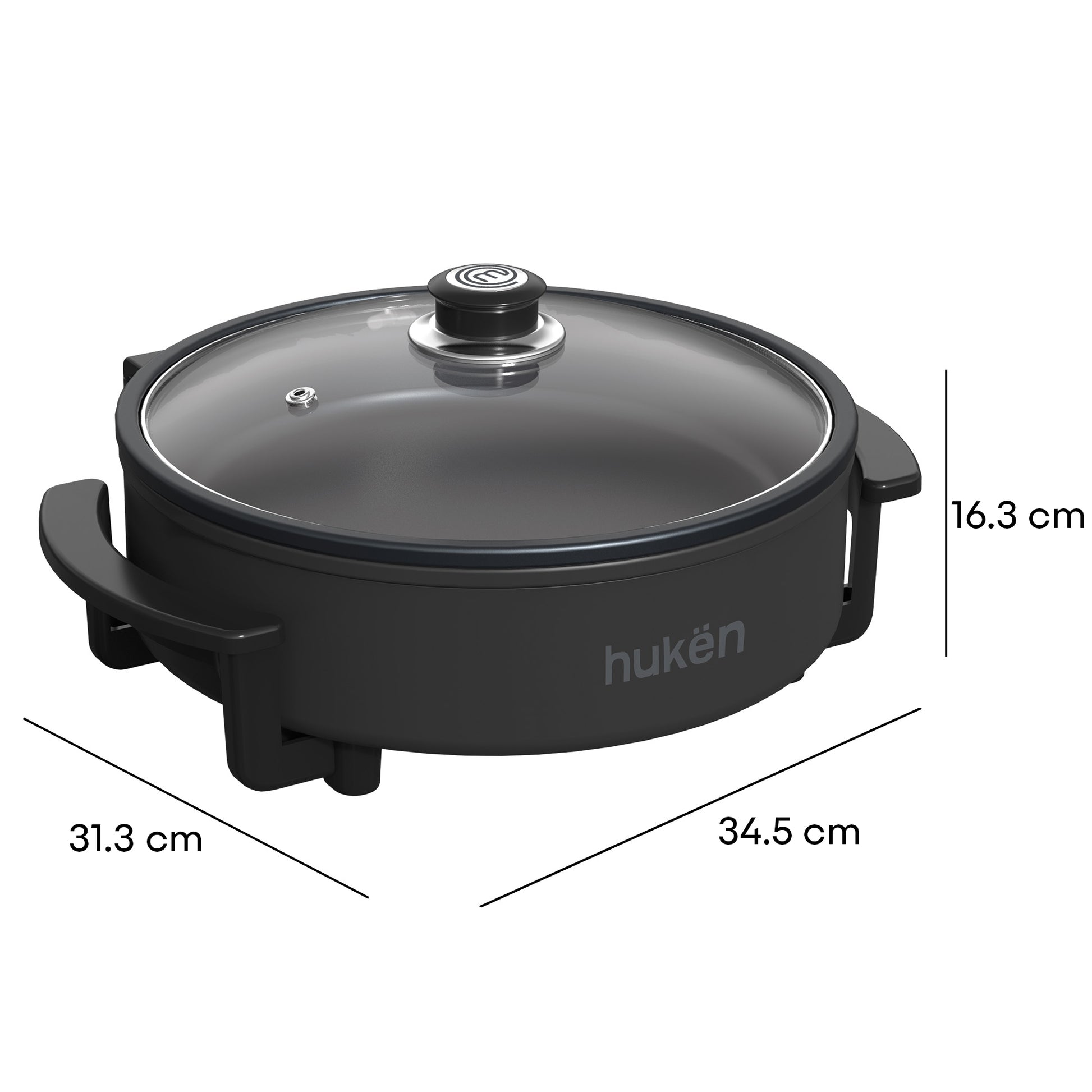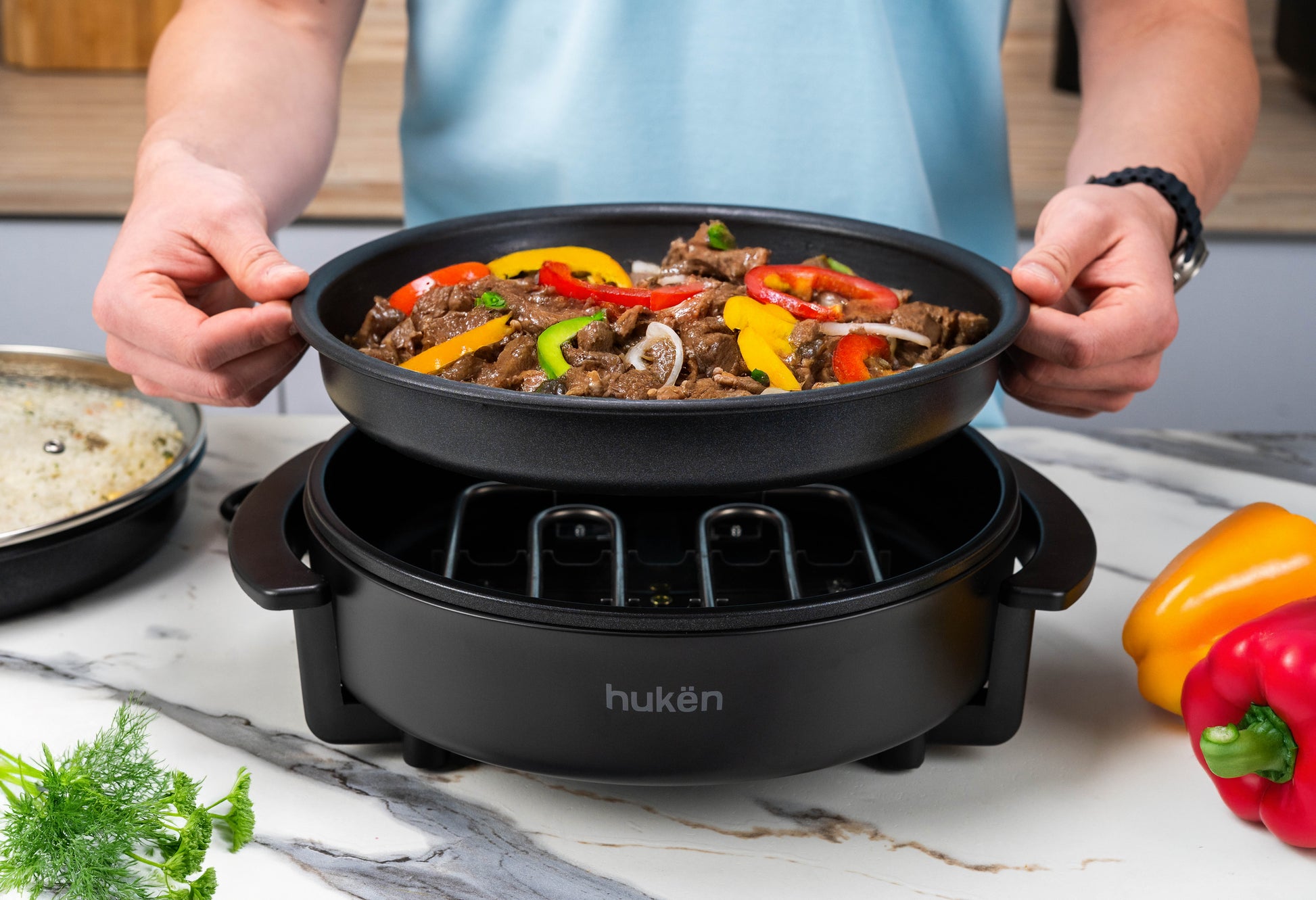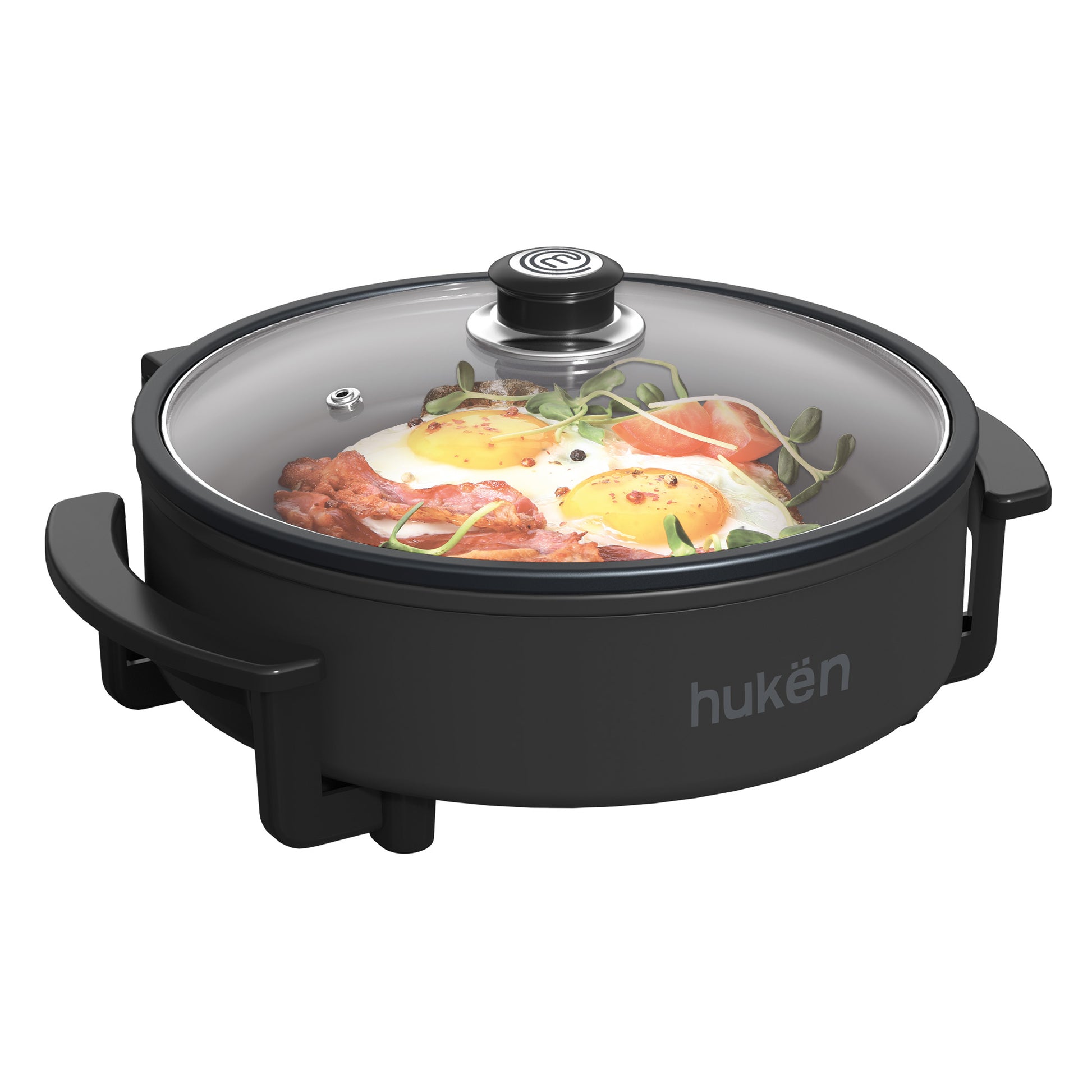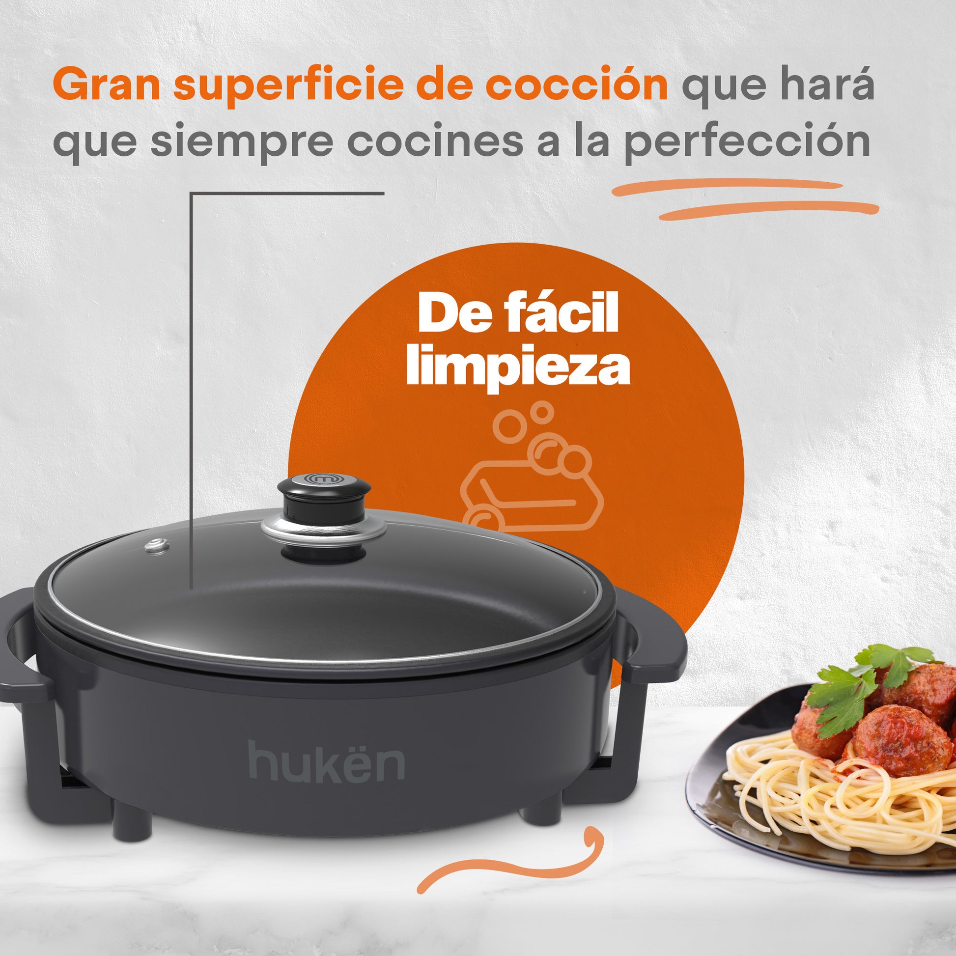 Sartén Eléctrico Desmontable GRILL+ de 30 cm | Antiadherente | Regulador de Temperatura | Tapa de Vidrio | Asas Frías | Hukën x MasterChef