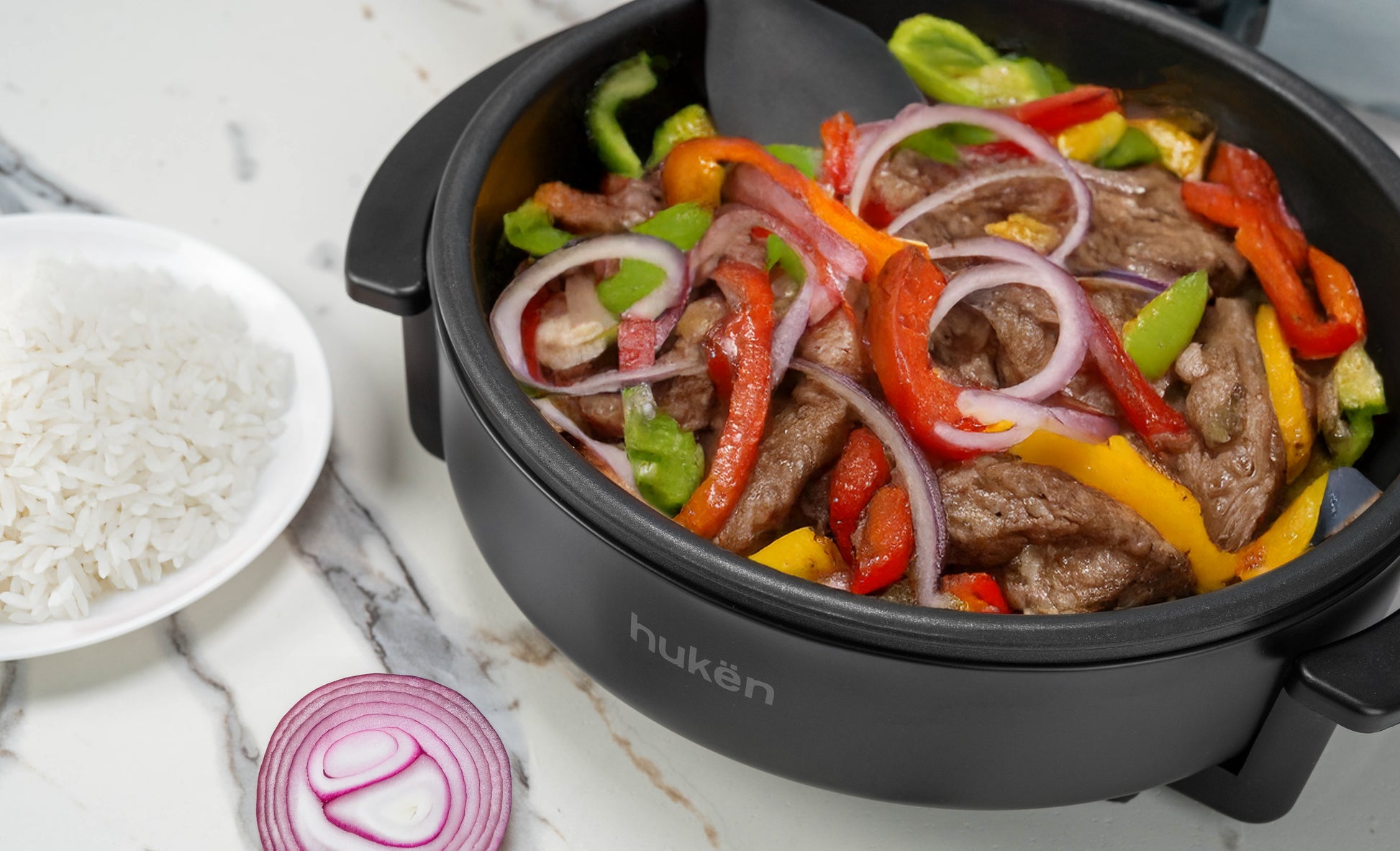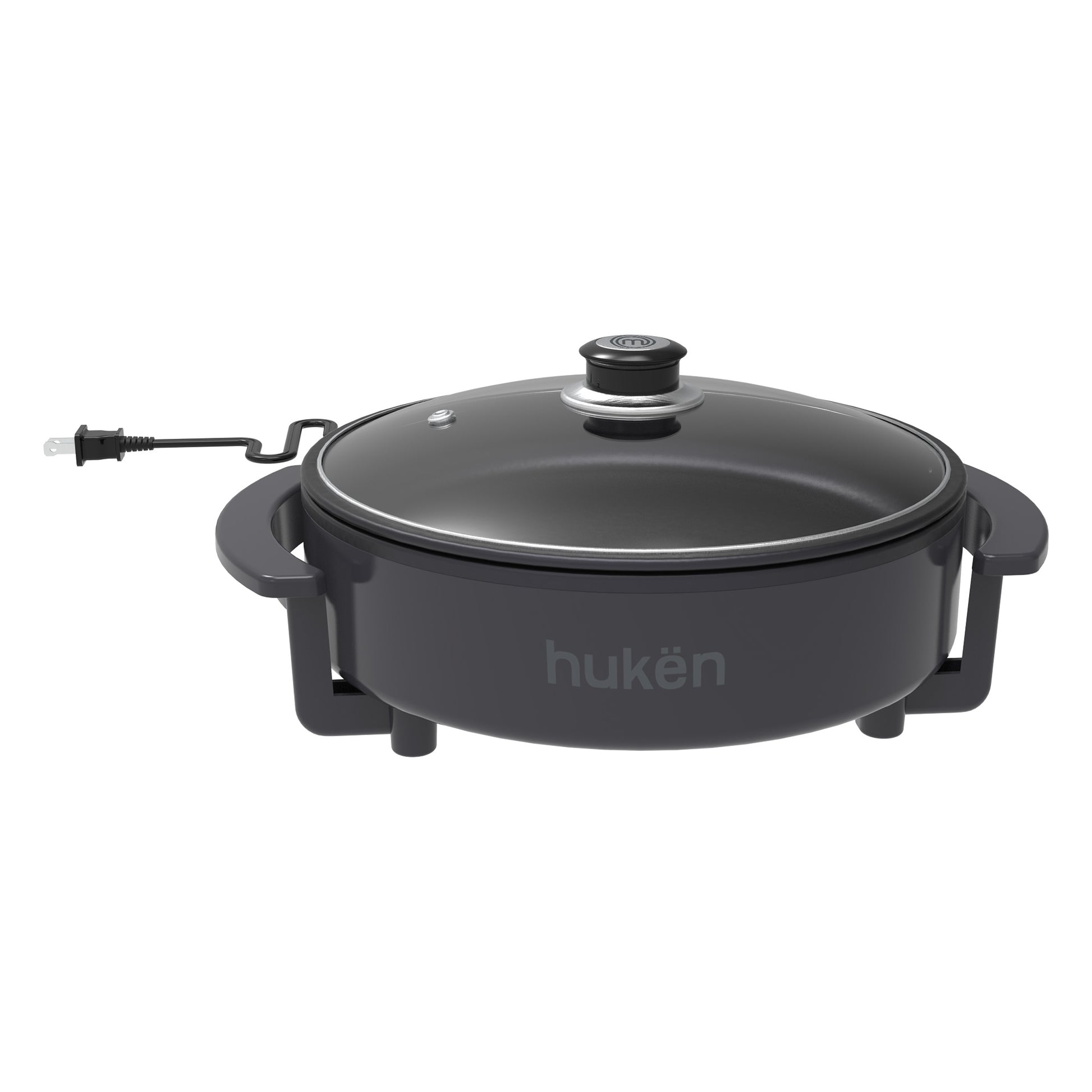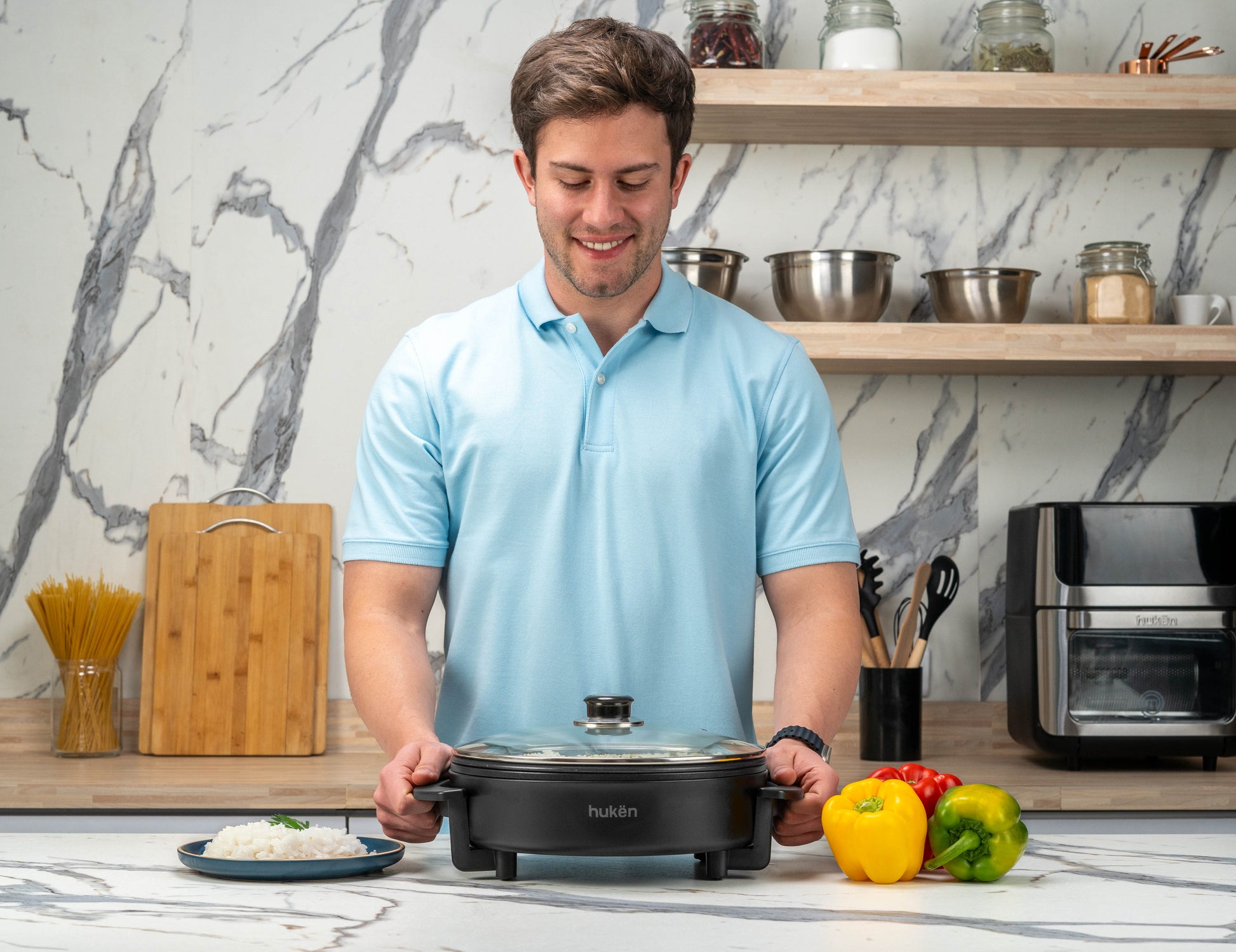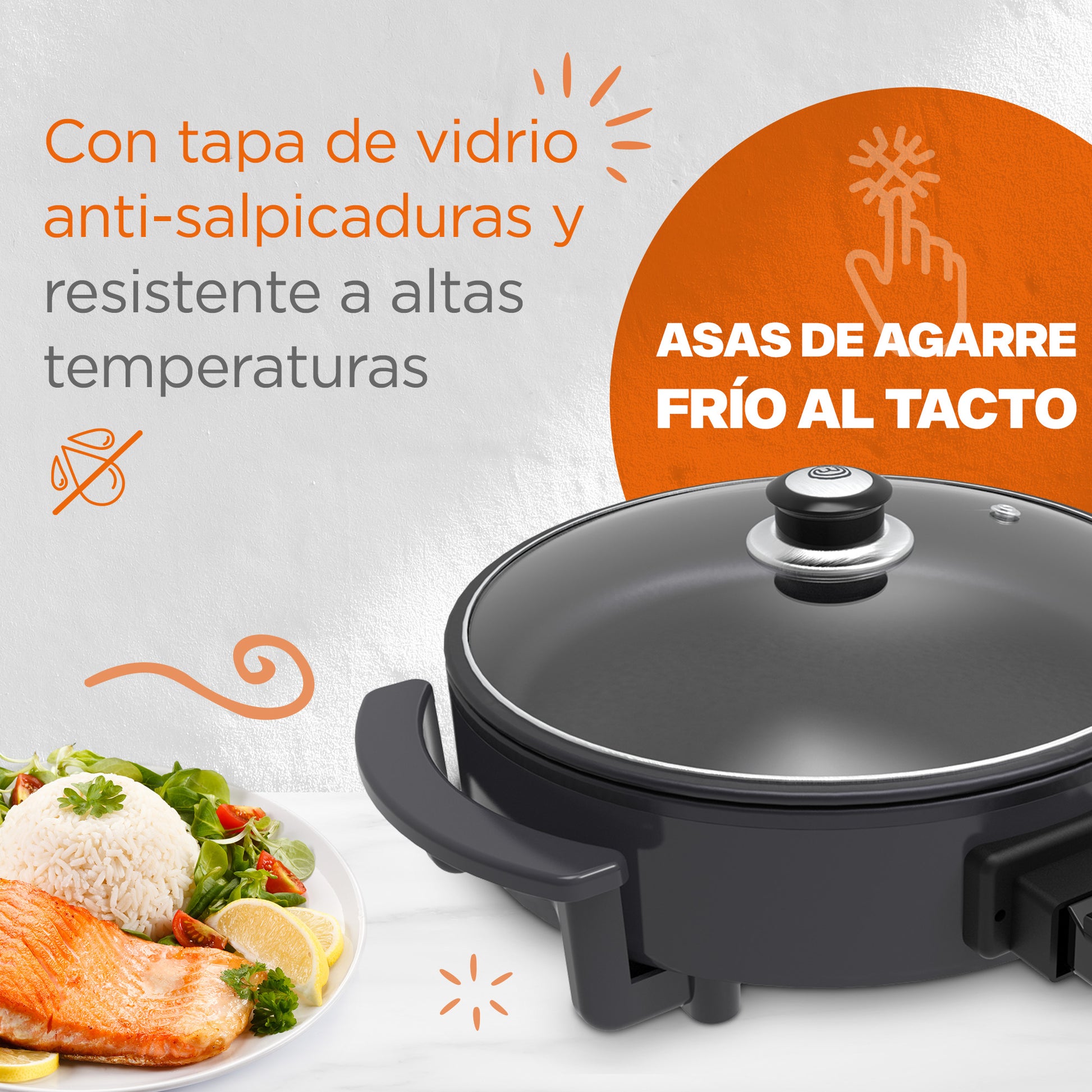 Sartén Eléctrico Desmontable GRILL+ de 30 cm | Antiadherente | Regulador de Temperatura | Tapa de Vidrio | Asas Frías | Hukën x MasterChef