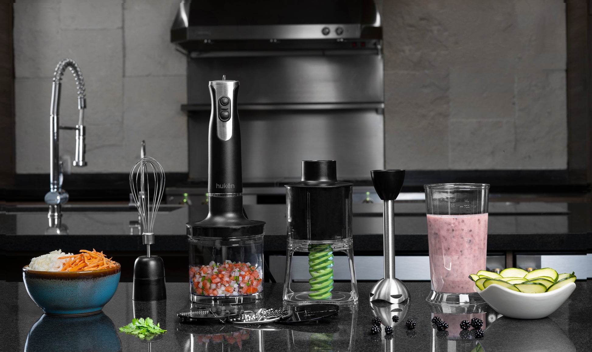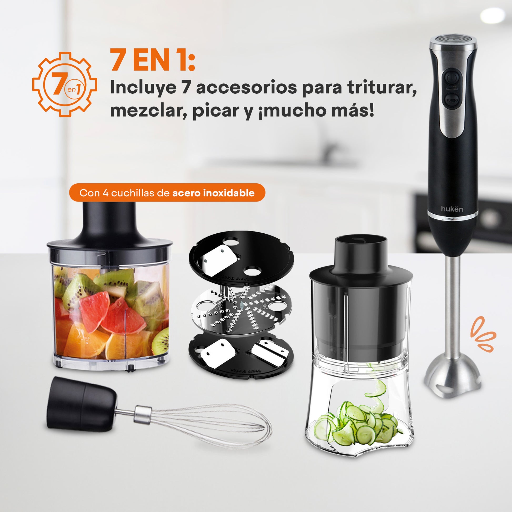 Set Batidora Inmersión 7 en 1 | 400W | Negro Matte | Hukën