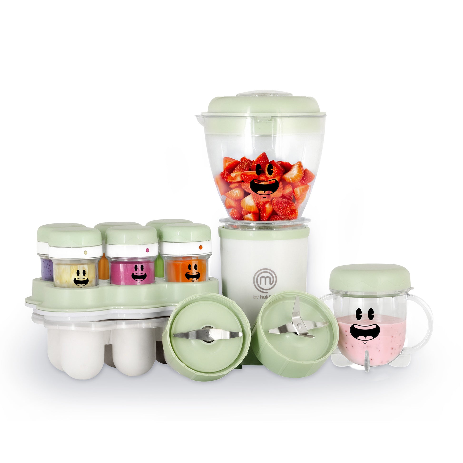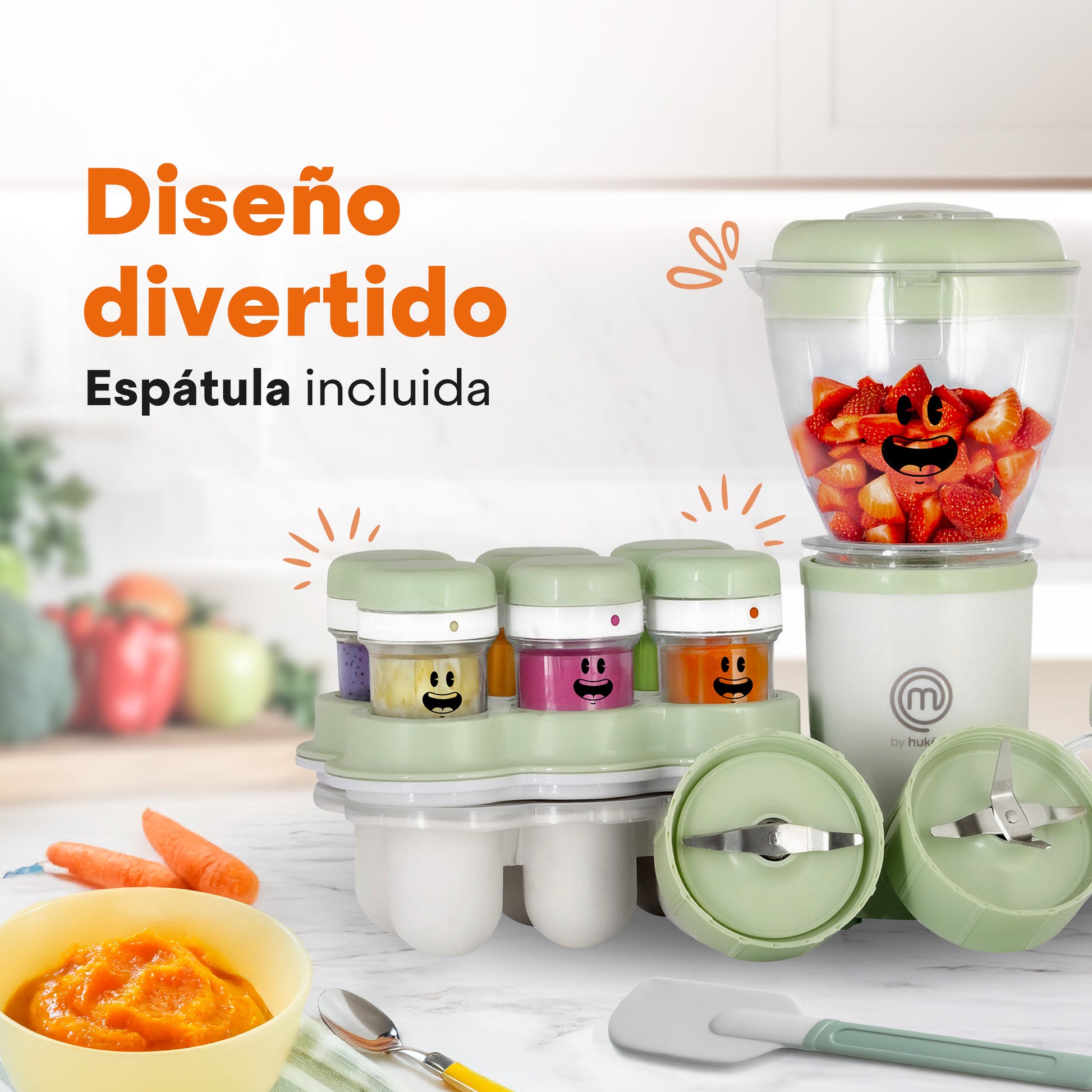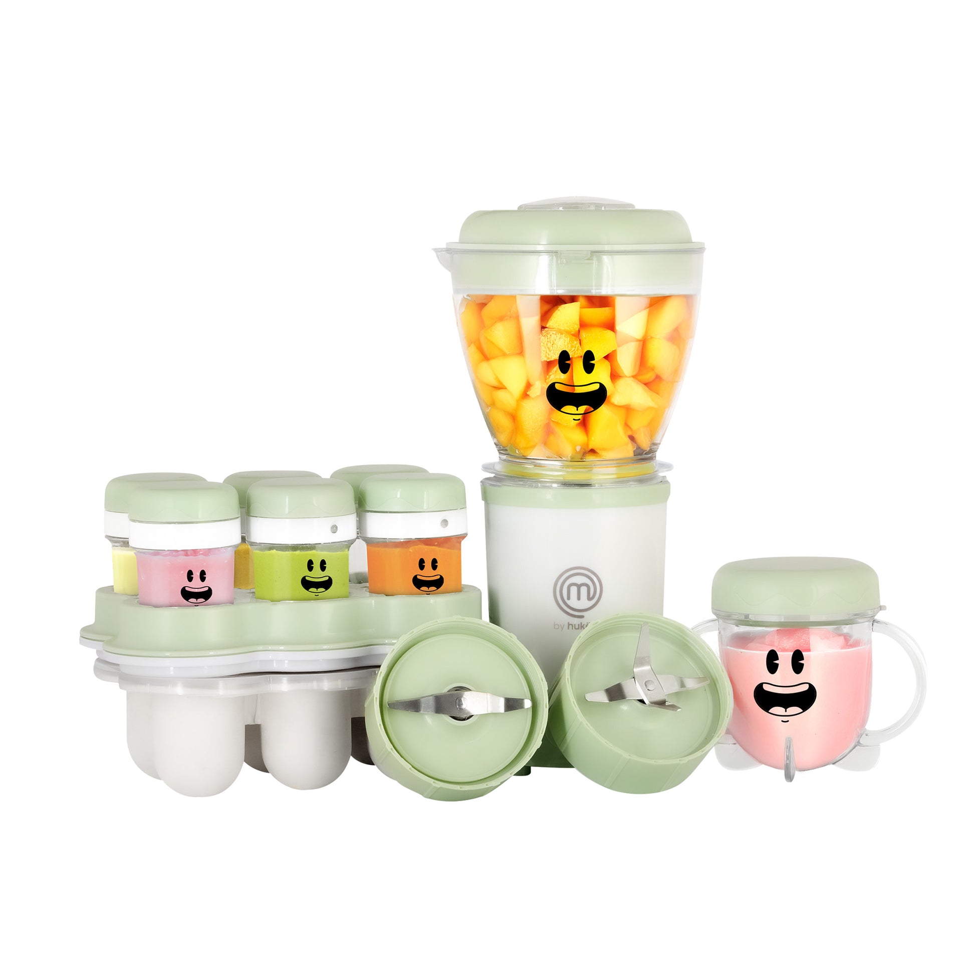 Set de Licuadora y Procesador Nutri Baby | Tazón 450ml + Vaso 170ml | 6 Contenedores con Fecha | Aspas para Papillas y Cereales | Bandeja para Congelar | Libre de BPA | Hukën x MasterChef