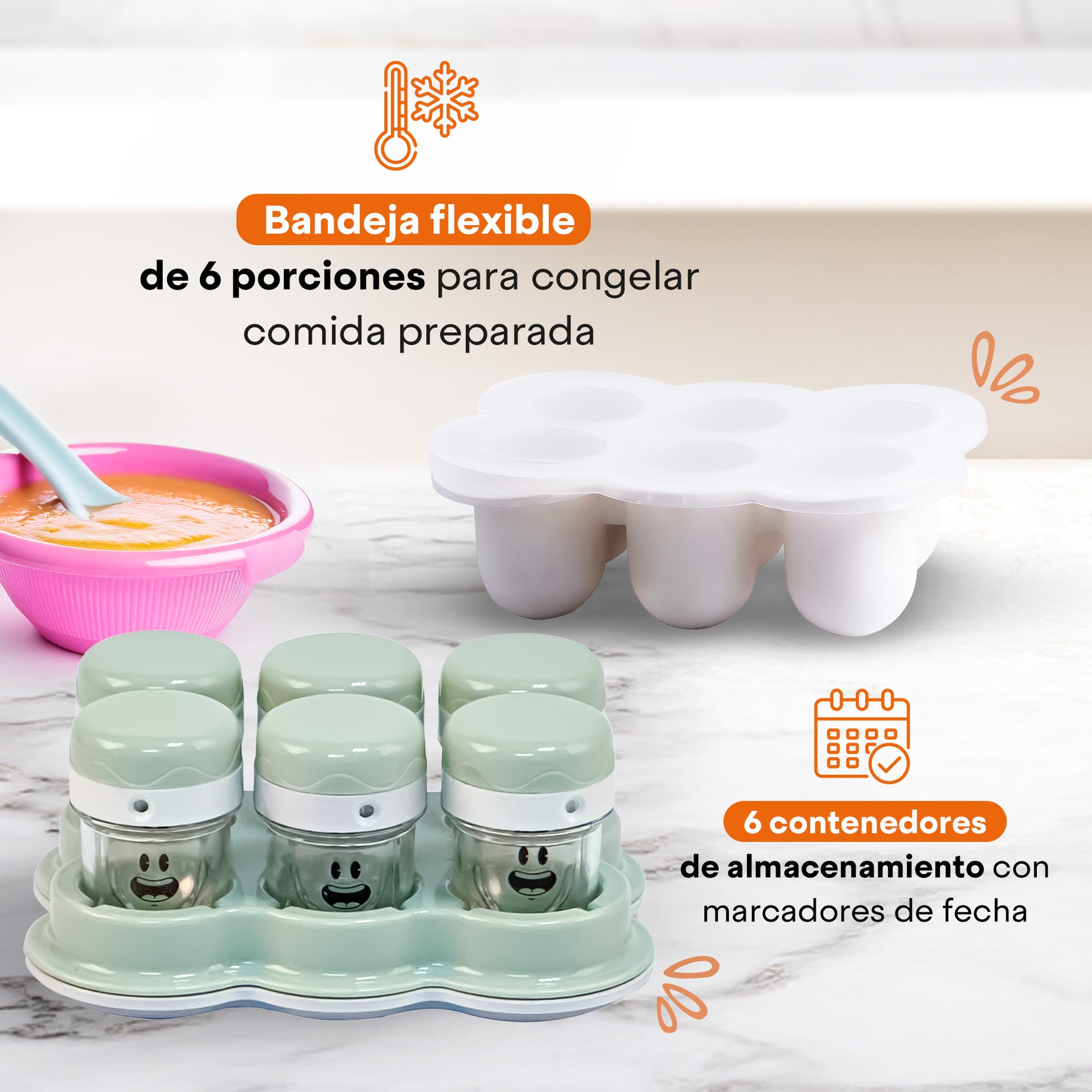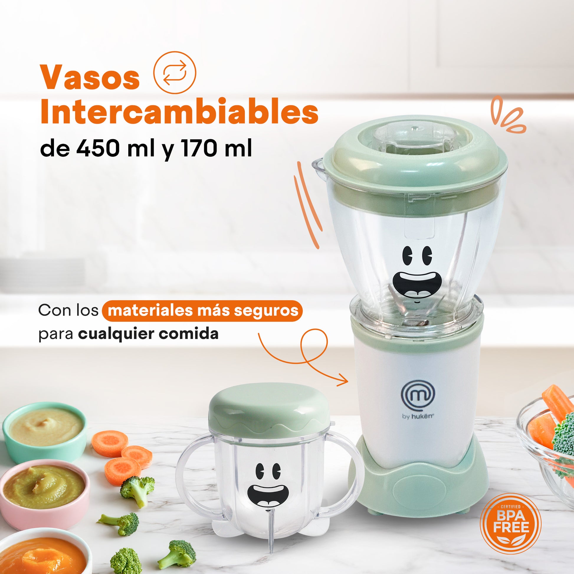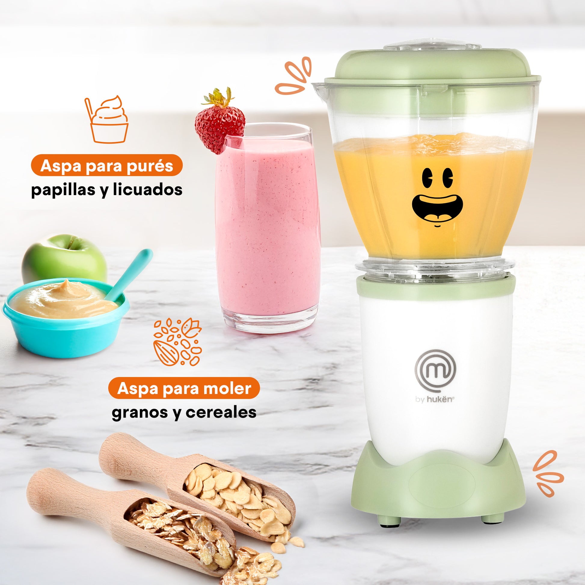 Set de Licuadora y Procesador Nutri Baby | Tazón 450ml + Vaso 170ml | 6 Contenedores con Fecha | Aspas para Papillas y Cereales | Bandeja para Congelar | Libre de BPA | Hukën x MasterChef